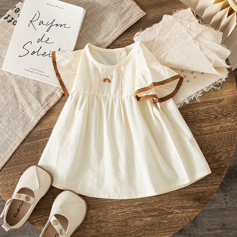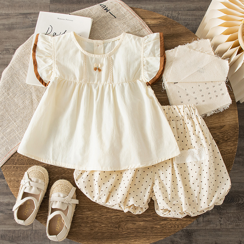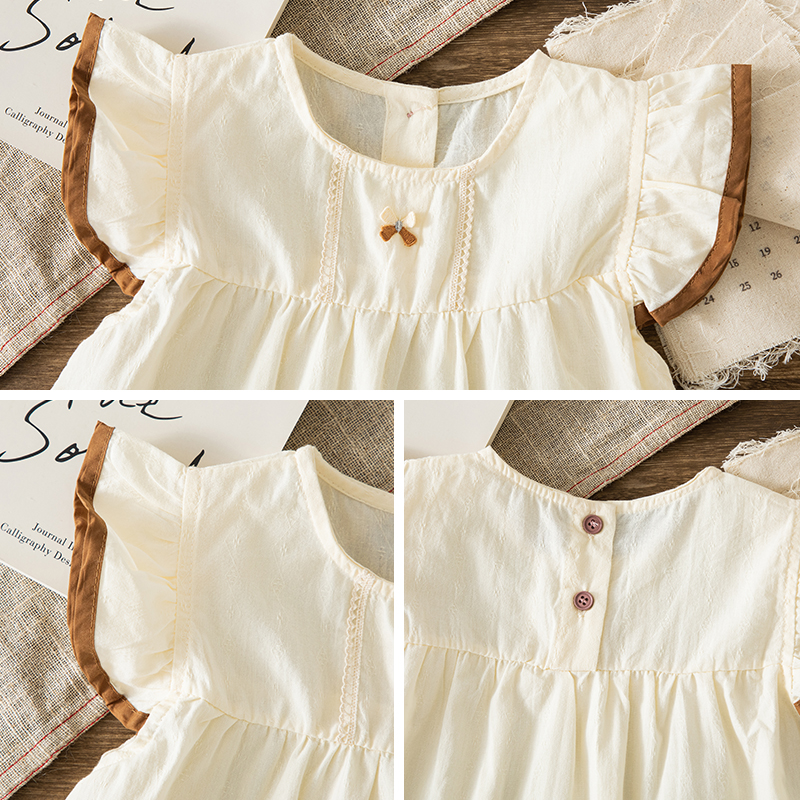 女童衬衫夏季2025新款法式小女孩好看飞袖儿童上衣宝宝纯棉娃娃衫
