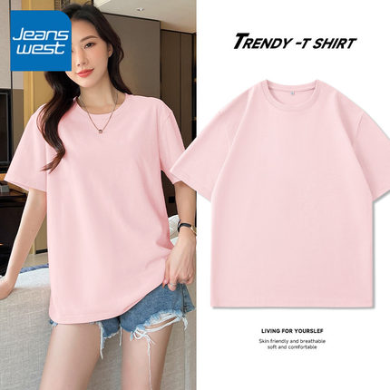 KCV真维斯纯棉粉色T恤2026夏季正肩短袖女简约风春秋内搭宽松上衣