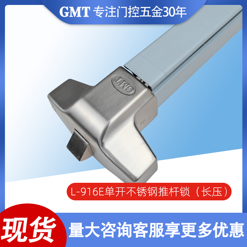 GMT消防门推杆锁防火门锁L-916E平推锁推杆锁安全平推式不锈钢