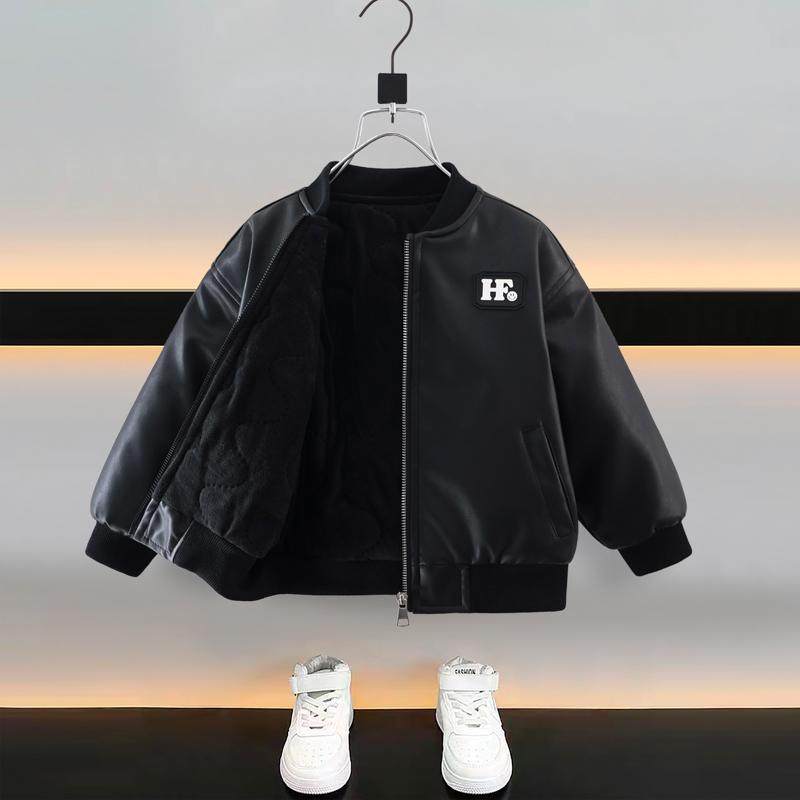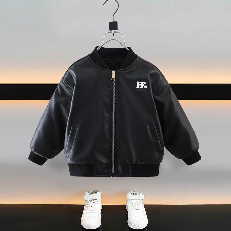男童皮衣外套春秋棒球服儿童休闲皮夹克PU皮夹子宝宝加棉加绒洋气