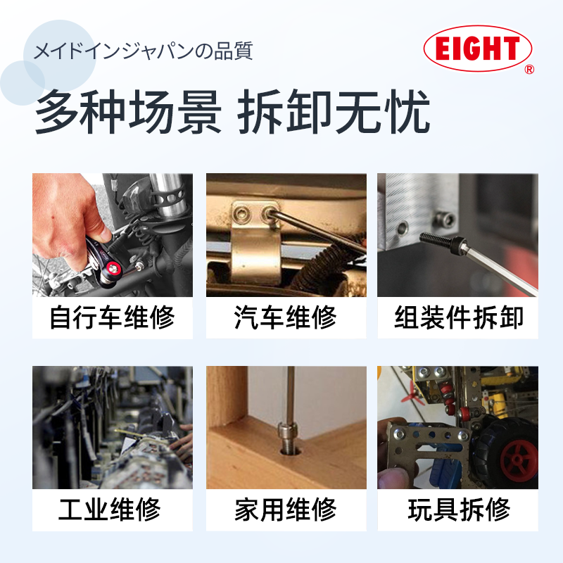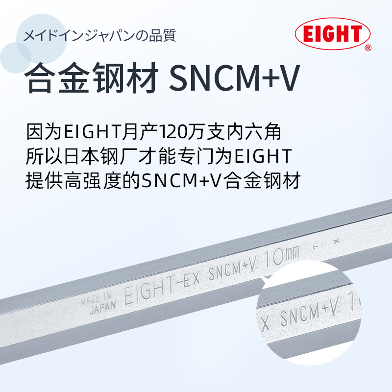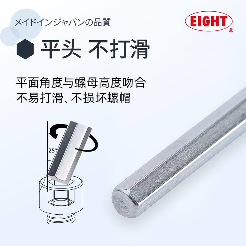 EIGHT日本进口百利加长T型内六角扳手单个英制平头6角螺丝刀工具