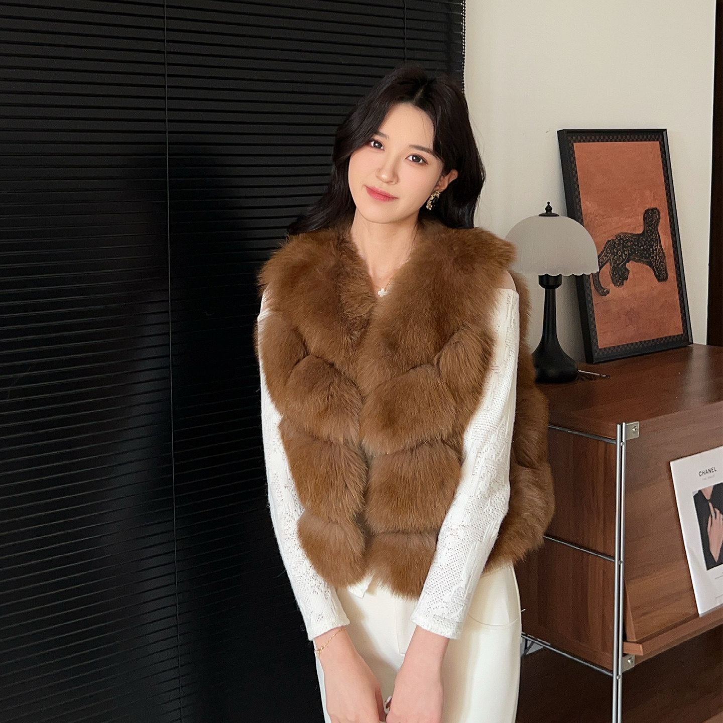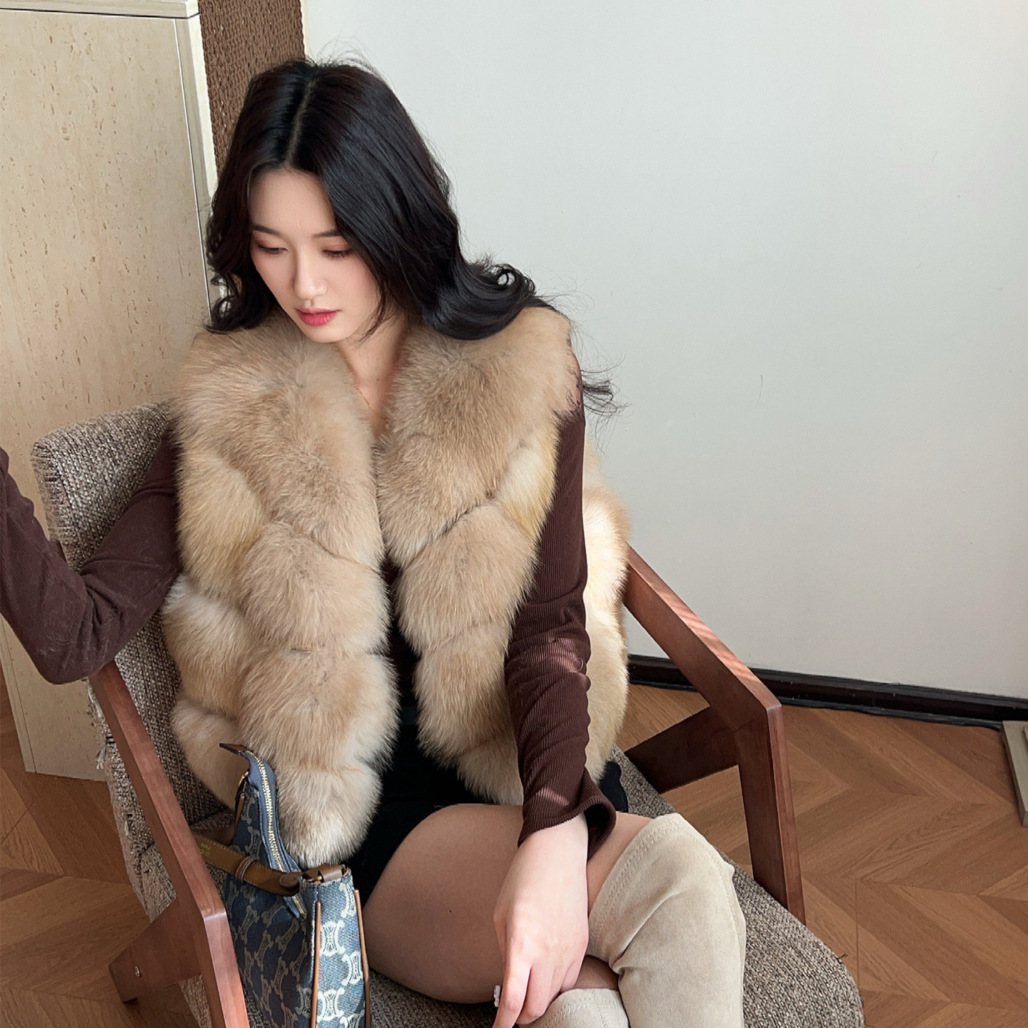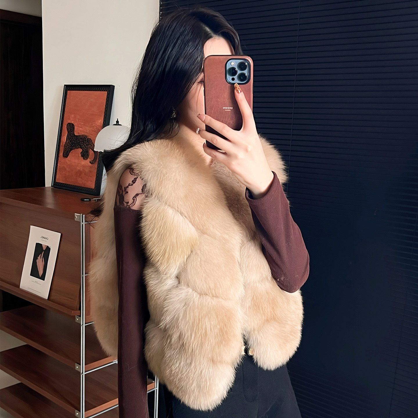 轻奢狐狸毛皮草毛毛马甲女短款2025新款背心显瘦秋冬外套整皮背毛
