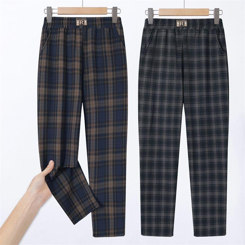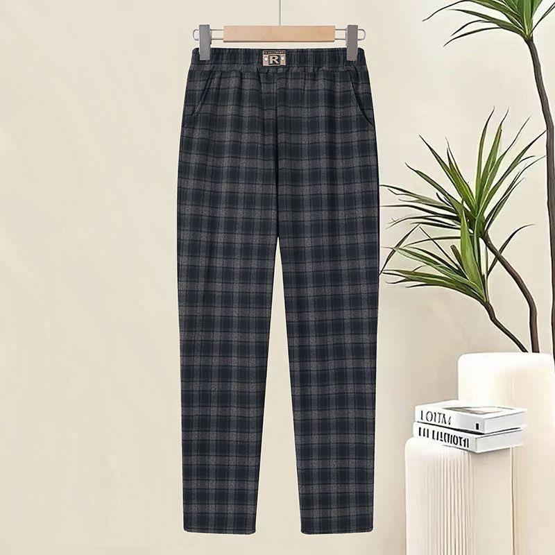 加绒格子直筒妈妈春秋裤子高腰宽松女裤休闲女士中老年休闲裤长裤