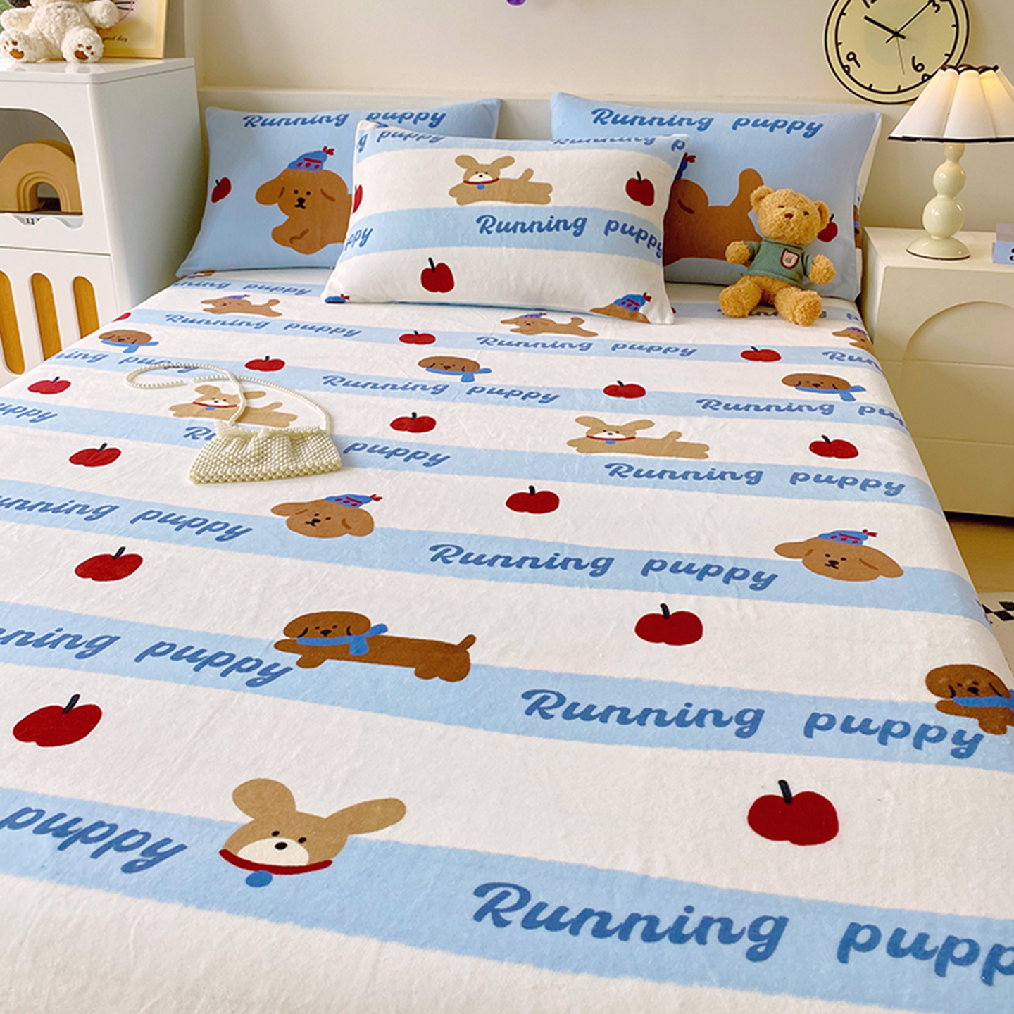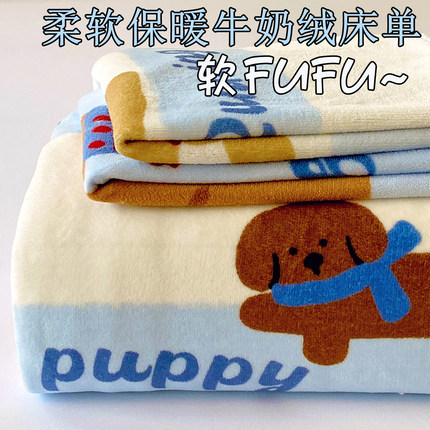 卡通牛奶绒床单单件2025新款冬季珊瑚绒被单双人儿童毯子加绒床品