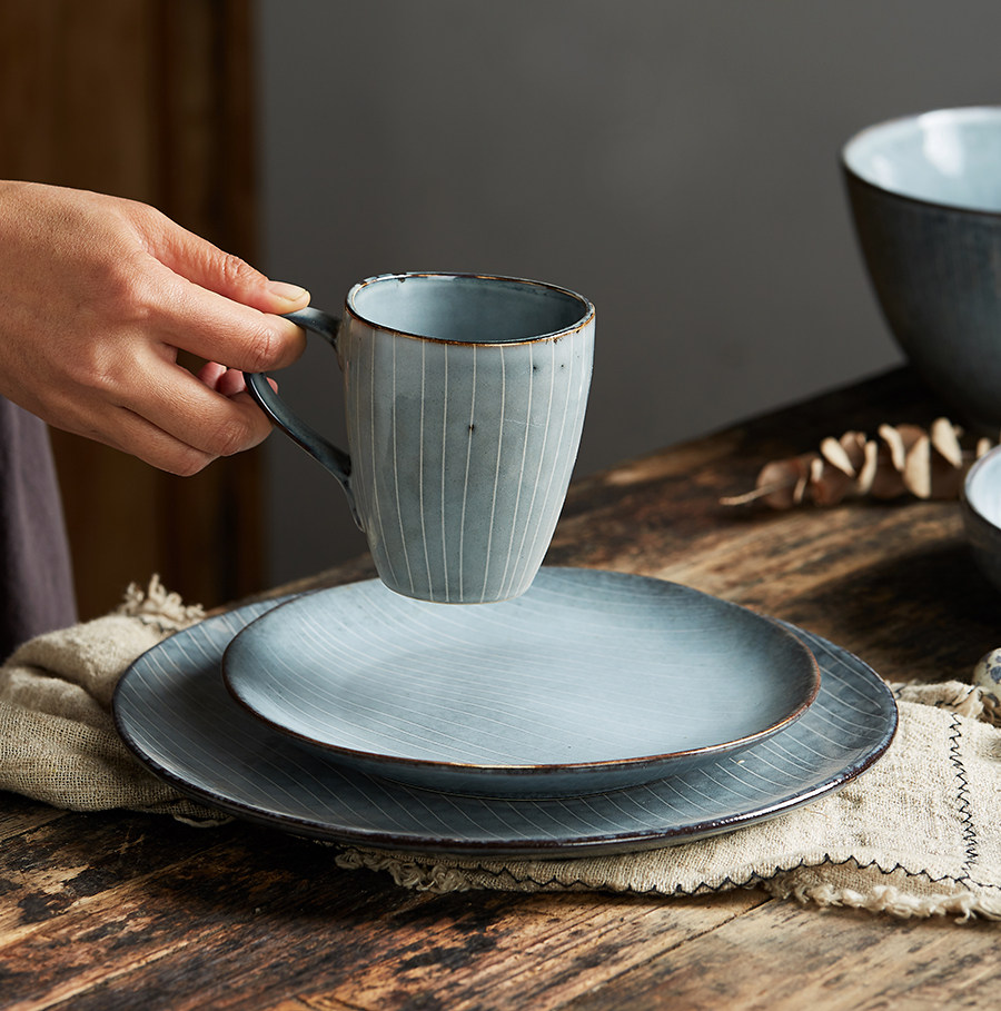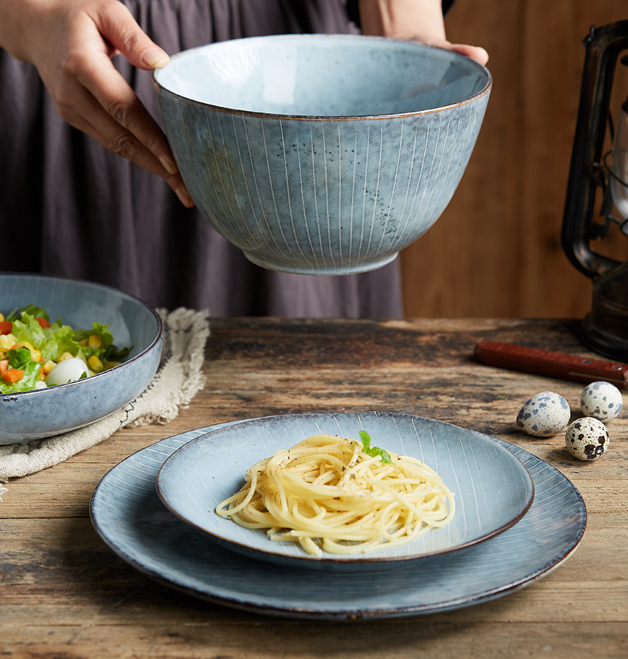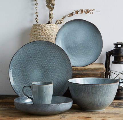 微瑕餐具菜盘家用汤碗牛排餐盘面碗青玄带B陶瓷水果盘子北欧
