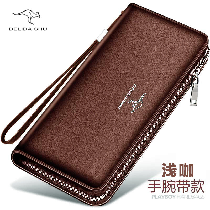 2025新款男士钱包大容量长款拉链商务手抓手拿包牛皮包钱夹手包