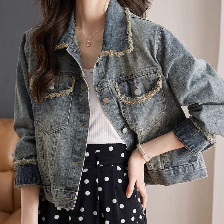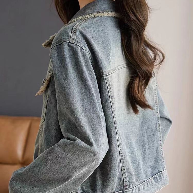 牛仔外套2025秋季新款百搭休闲显瘦设计宽松短款小个子毛边上衣
