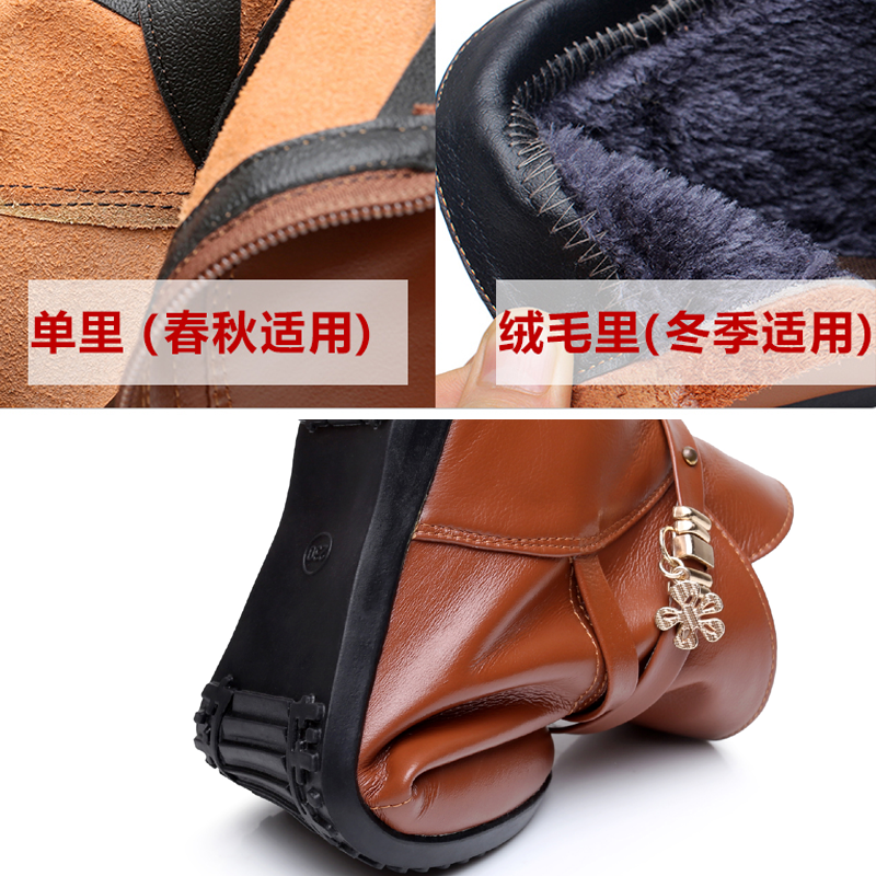 皮鞋女春秋女鞋平底内增高真皮短靴单靴休闲冬季舒适坡跟妈妈鞋子