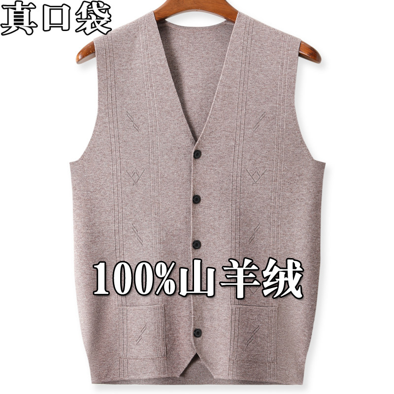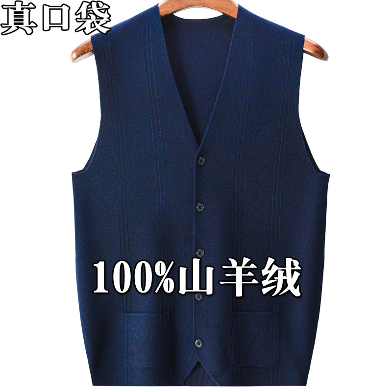 新款鄂尔多斯市产本命年红色羊绒开衫马甲男中年宽松坎肩羊毛背心