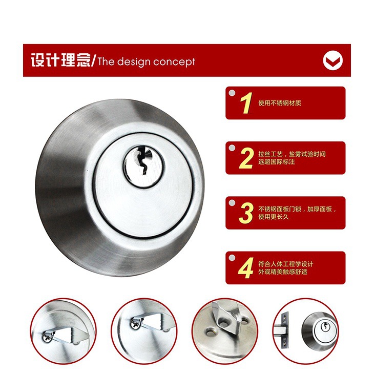 包邮固力闭锁老式门锁圆头单头锁隐形出租房通用型防盗门锁带钥匙