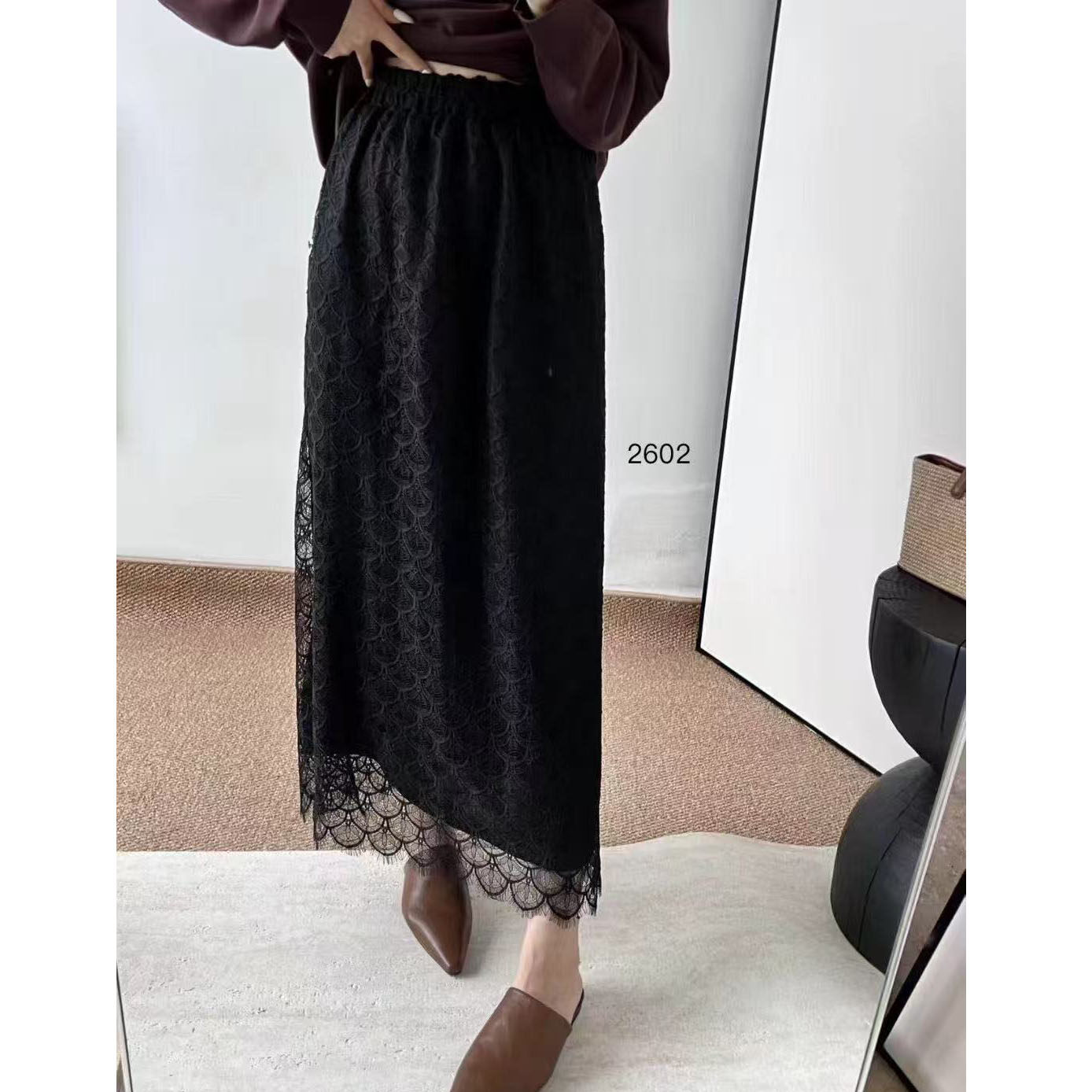 羽毛半身裙 黑色蕾丝长裙大码女装2025秋季新款胖mm高腰a字裙2602