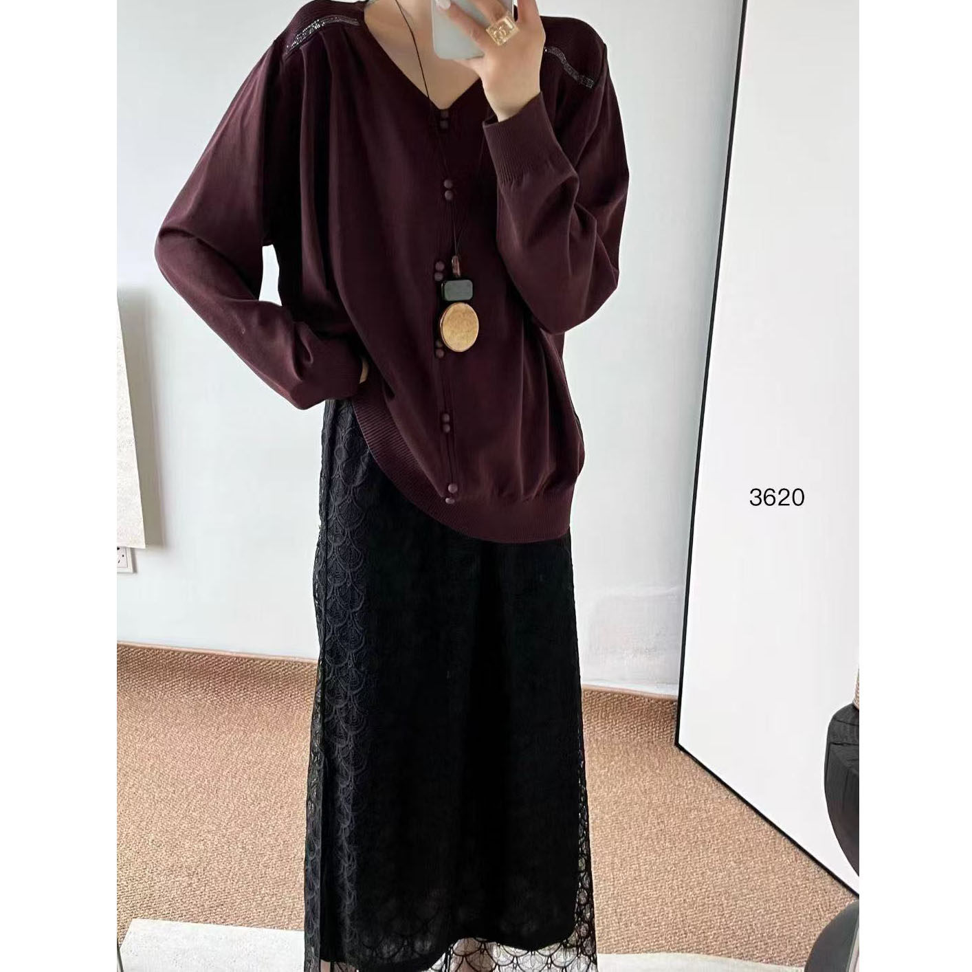显瘦时髦黑色蕾丝长裙半裙大码女