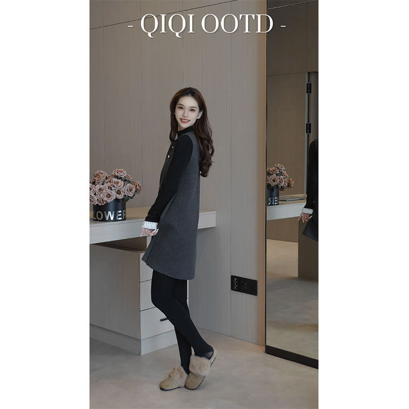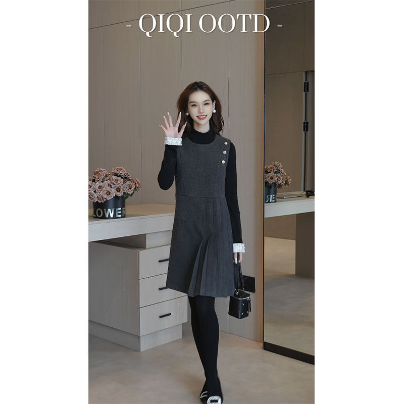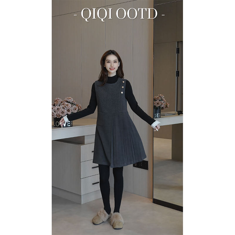 柒院家大码女法式设计西装百褶背心连衣裙2025秋冬宽松显瘦中长裙