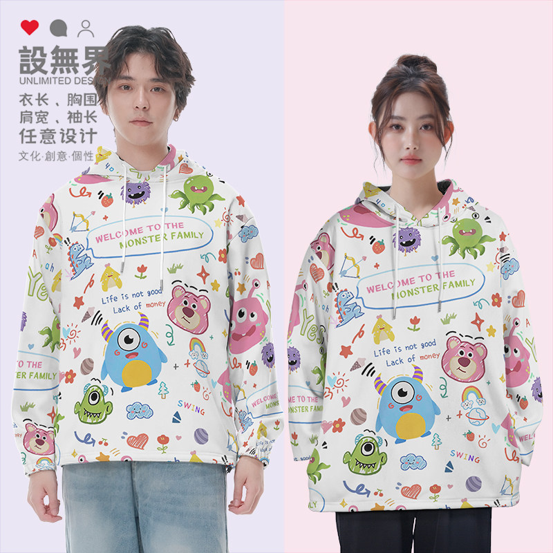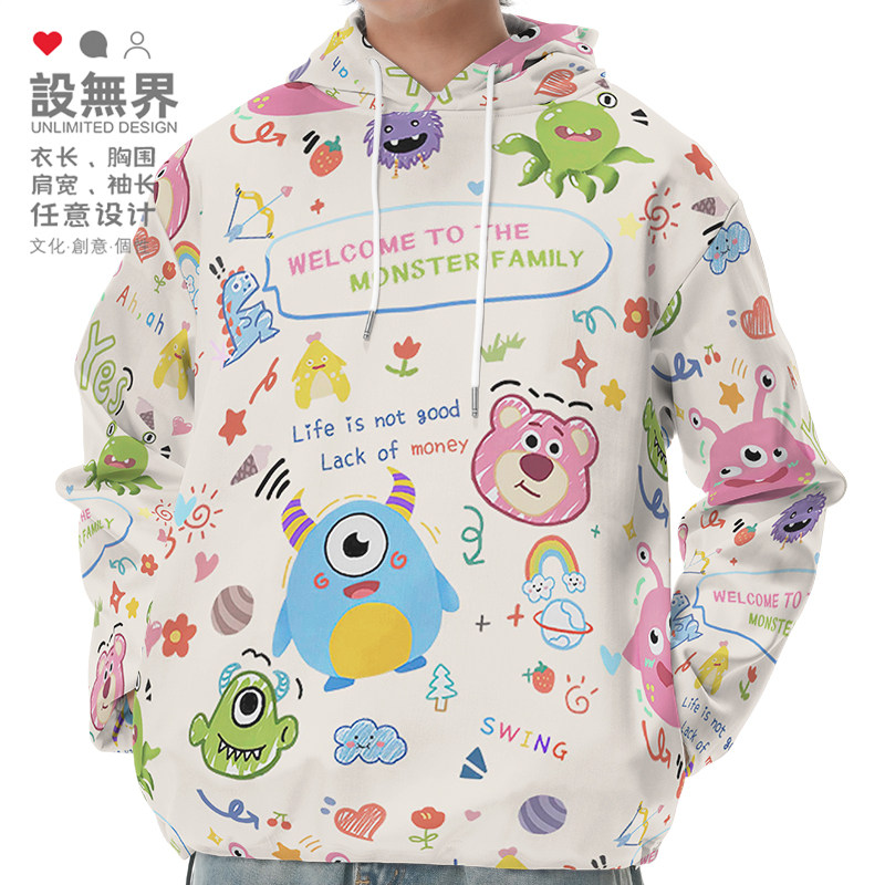 卡通动漫怪兽家族草莓小熊涂鸦大码连帽卫衣男装女装0017设 无界