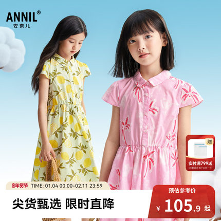 安奈儿童装女童短袖连衣裙夏新款清新纯棉印花甜美碎花裙子