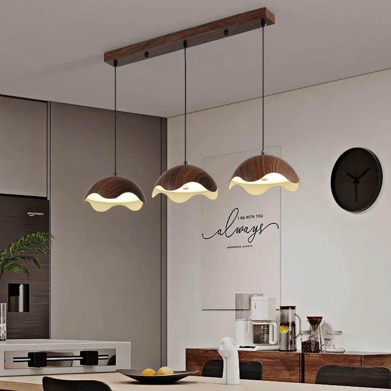 餐厅灯复古胡桃木纹中古风新中式禅意茶室吧台吊灯三头饭厅餐桌灯