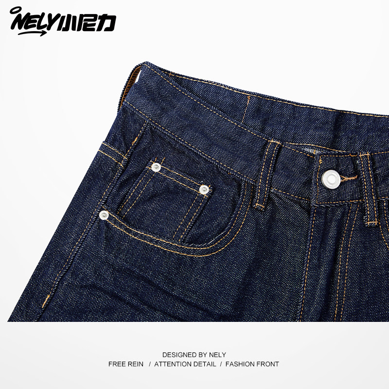 蓝色牛仔裤男夏季薄款2025新款宽松直筒水洗裤子青少年秋季阔腿裤
