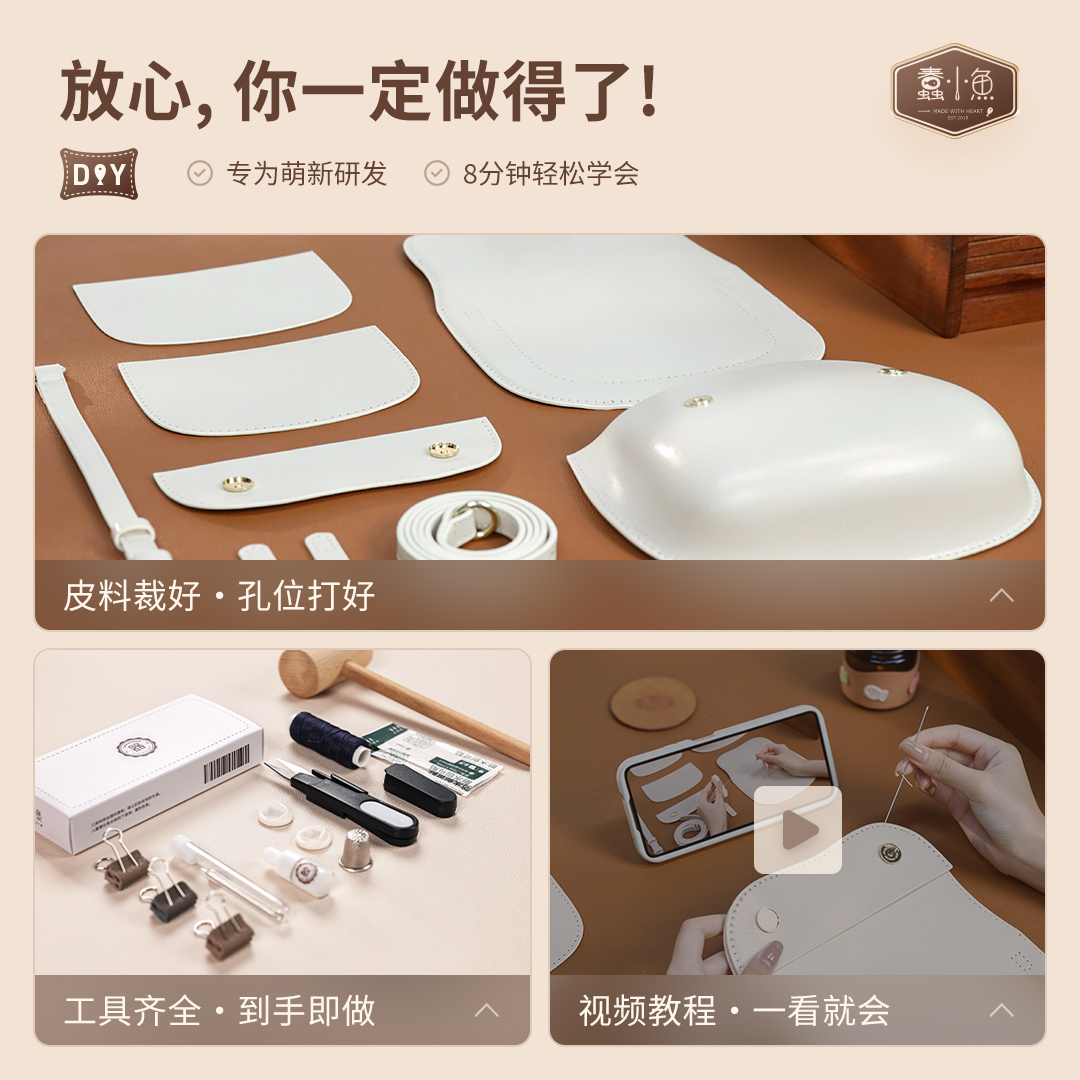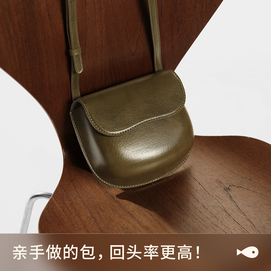 蠢小鱼diy手工包真牛皮半圆马鞍包小众设计单肩斜挎包材料包自制