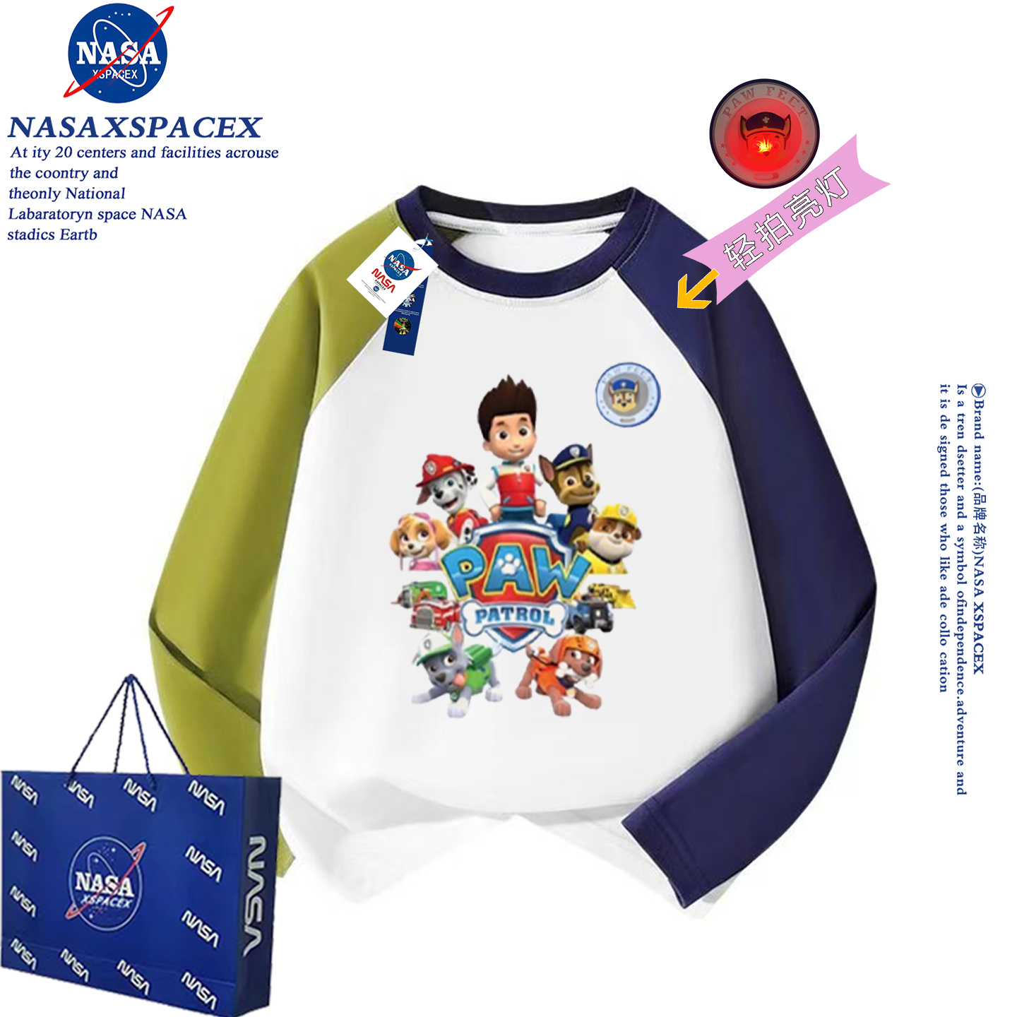 NASA联名发光汪汪队莱德队长衣服儿童纯棉长袖t恤秋季男童打底衫