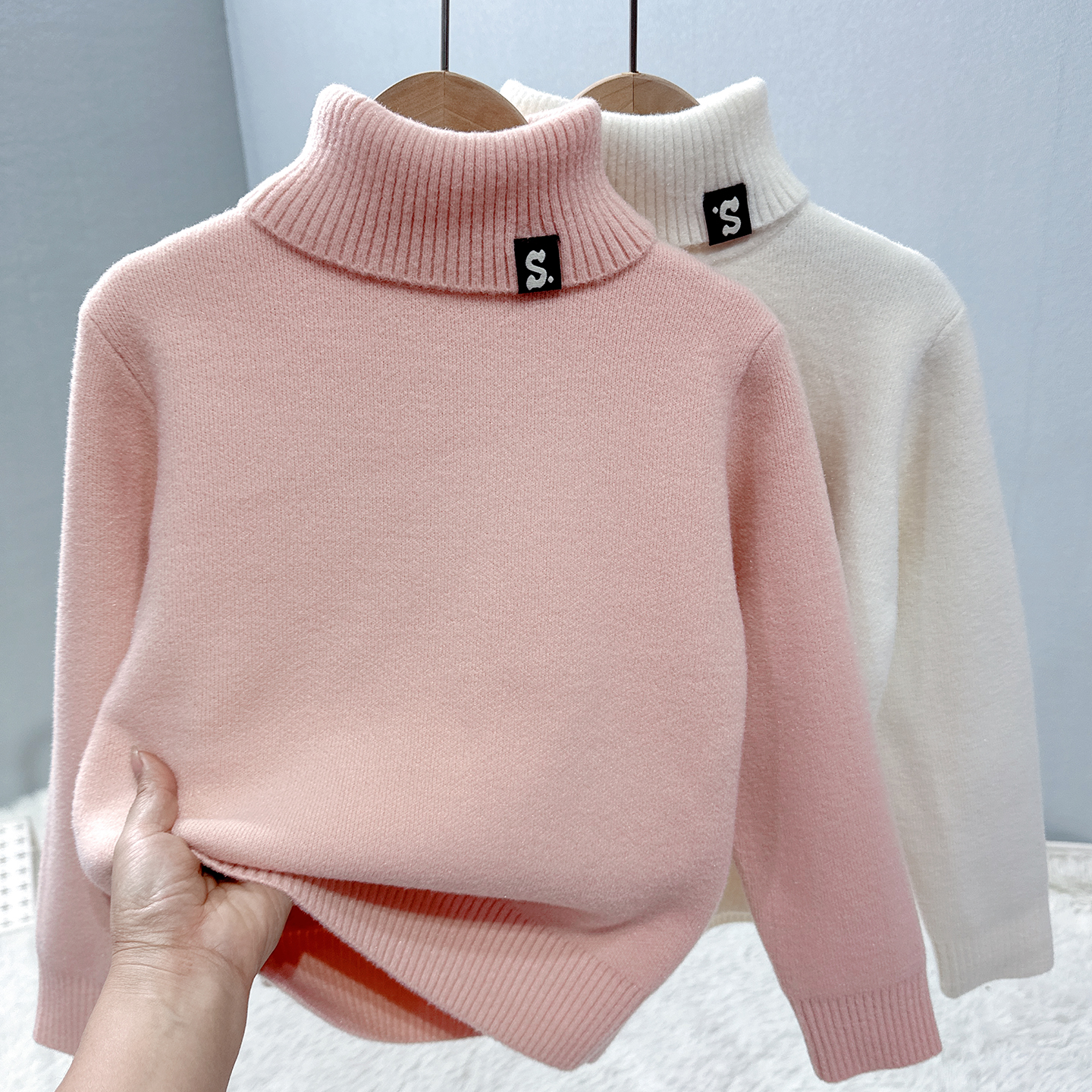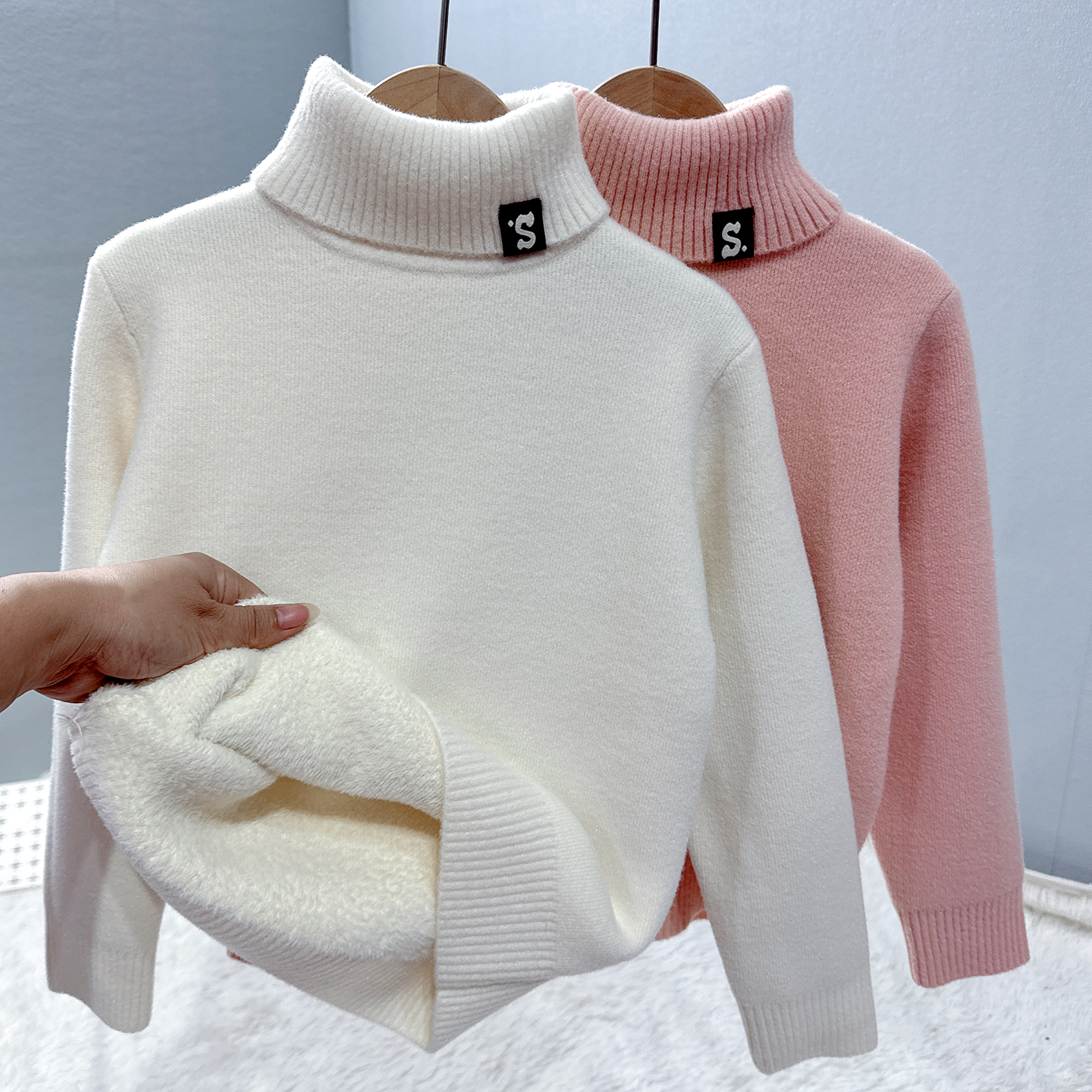 一体绒儿童高领毛衣秋冬新款男童加绒打底衫中大童女童针织衫童装