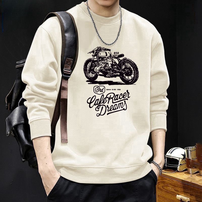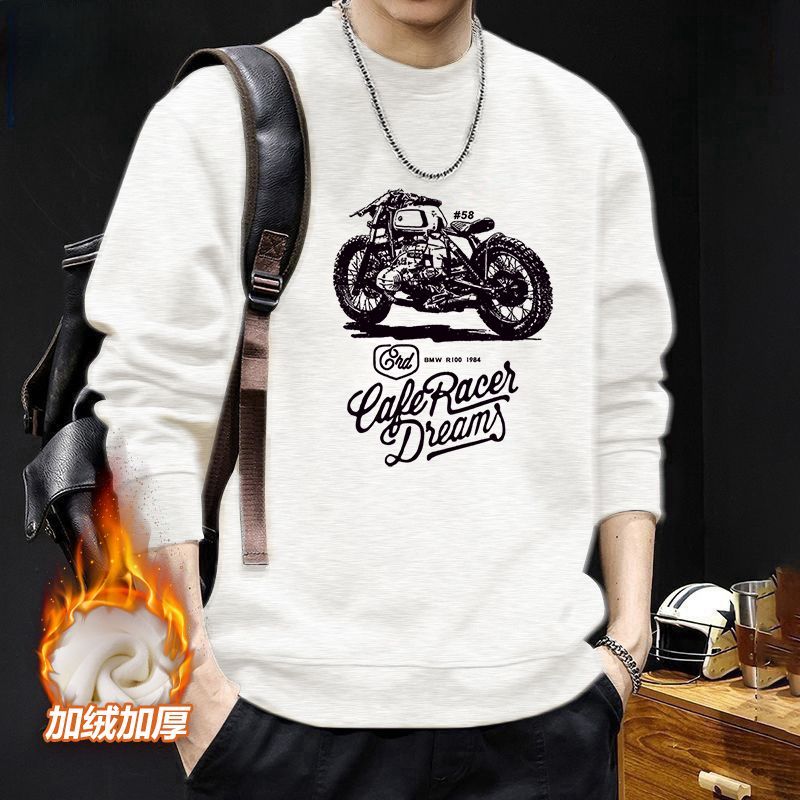 美式重磅加绒加厚圆领卫衣男秋冬季新款宽松潮牌上衣长袖套头外套