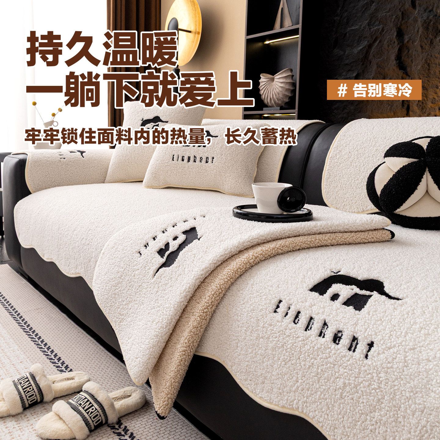 2025新款秋冬沙发垫轻奢高级感加厚毛绒皮沙发盖布固定防滑坐垫子