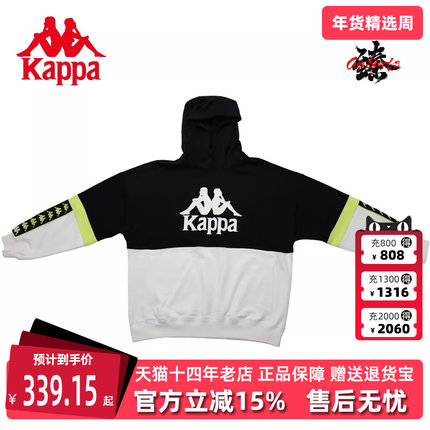 Kappa卡帕男子连帽卫衣新款串标撞色运动透气休闲套头衫