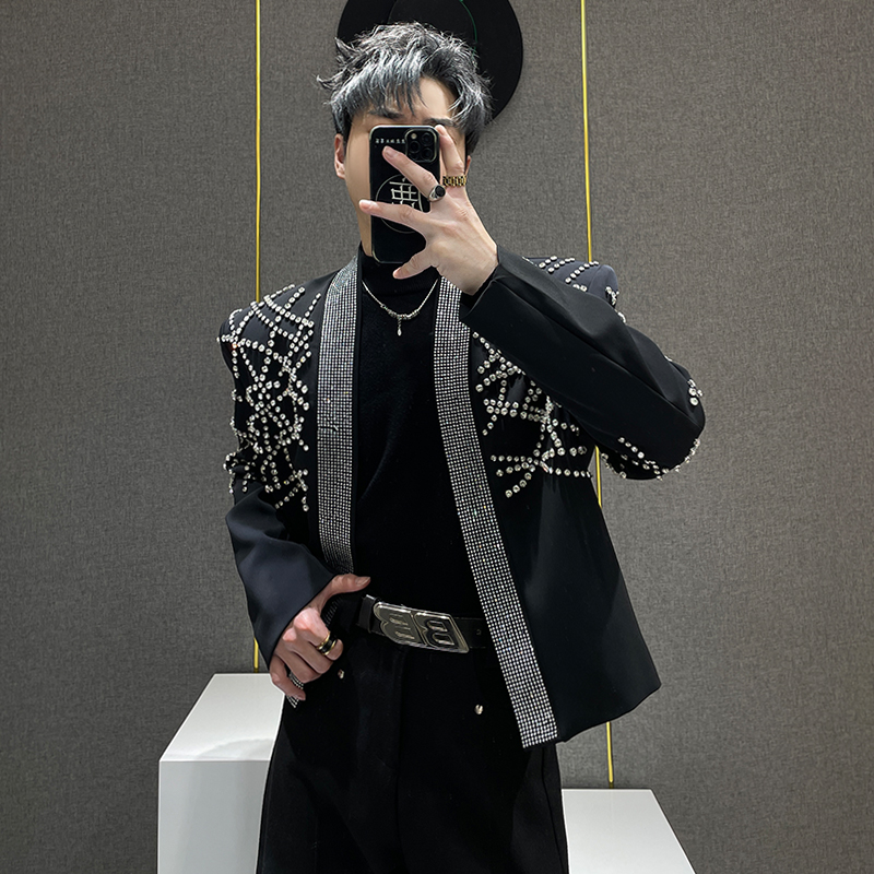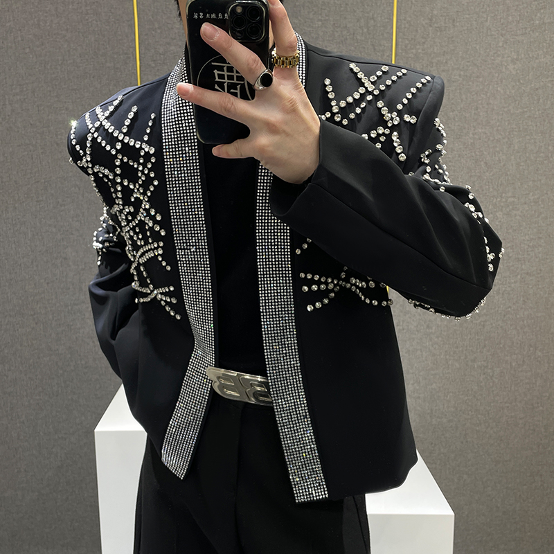 鹿鹿/小众重工镶钻设计感西服男高级感痞帅宽松时髦高端西装外套