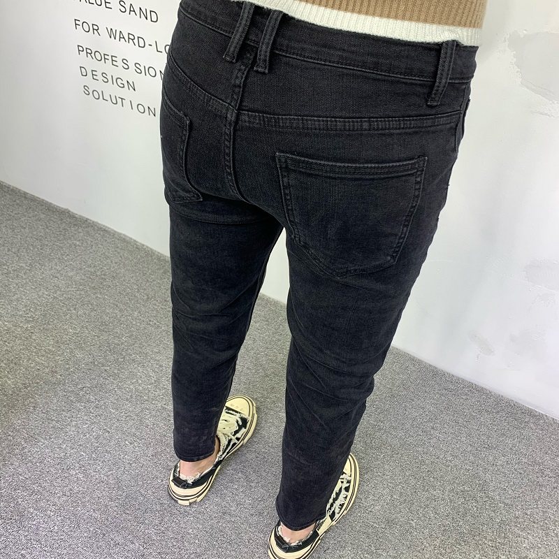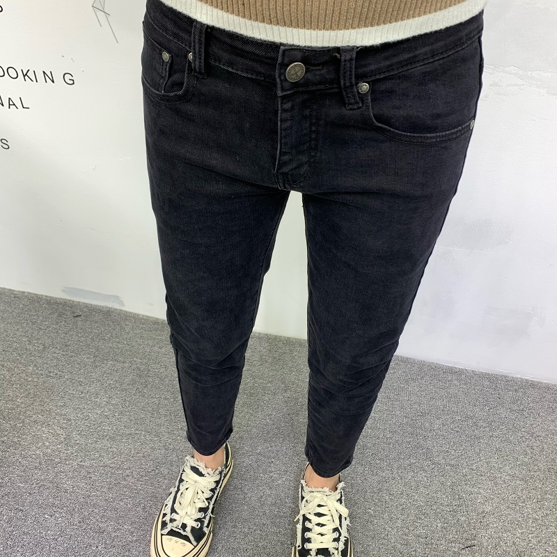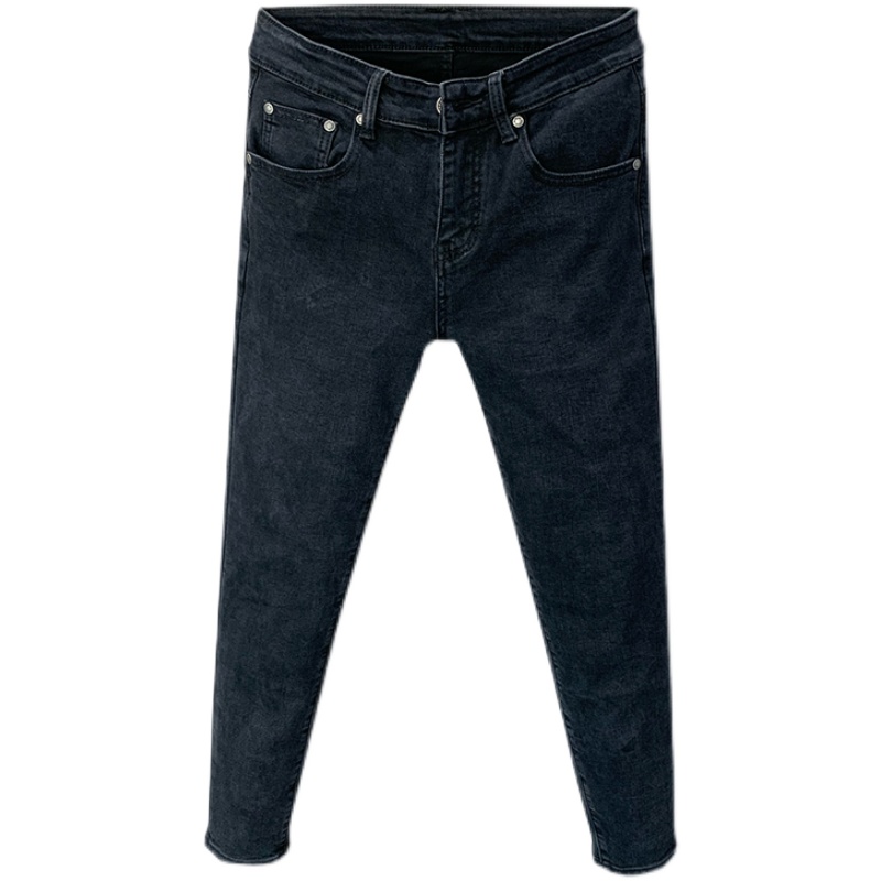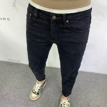 夏季水洗九分牛仔裤男纯黑色复古休闲潮流韩版百搭弹力修身小脚裤