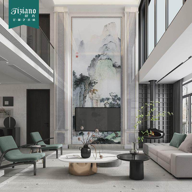 缇香轻奢罗马柱背景墙瓷砖壁画岩板大理石客厅电视墙罗马柱边框