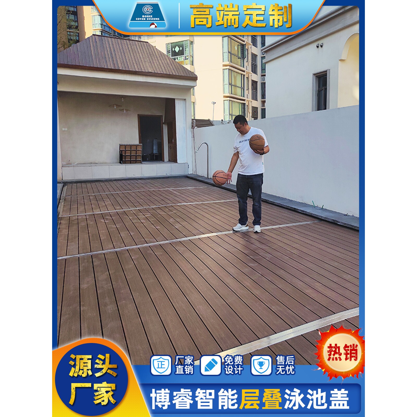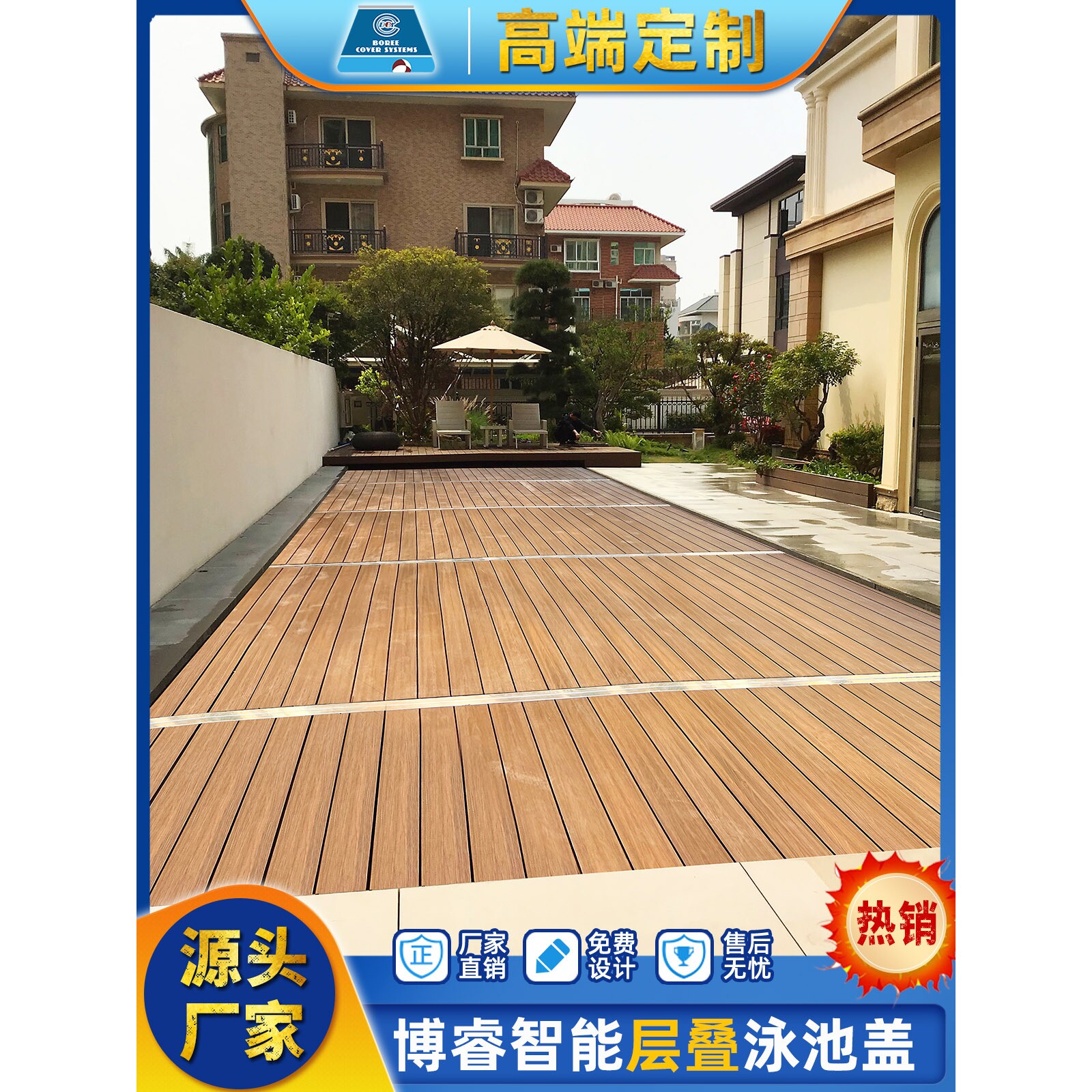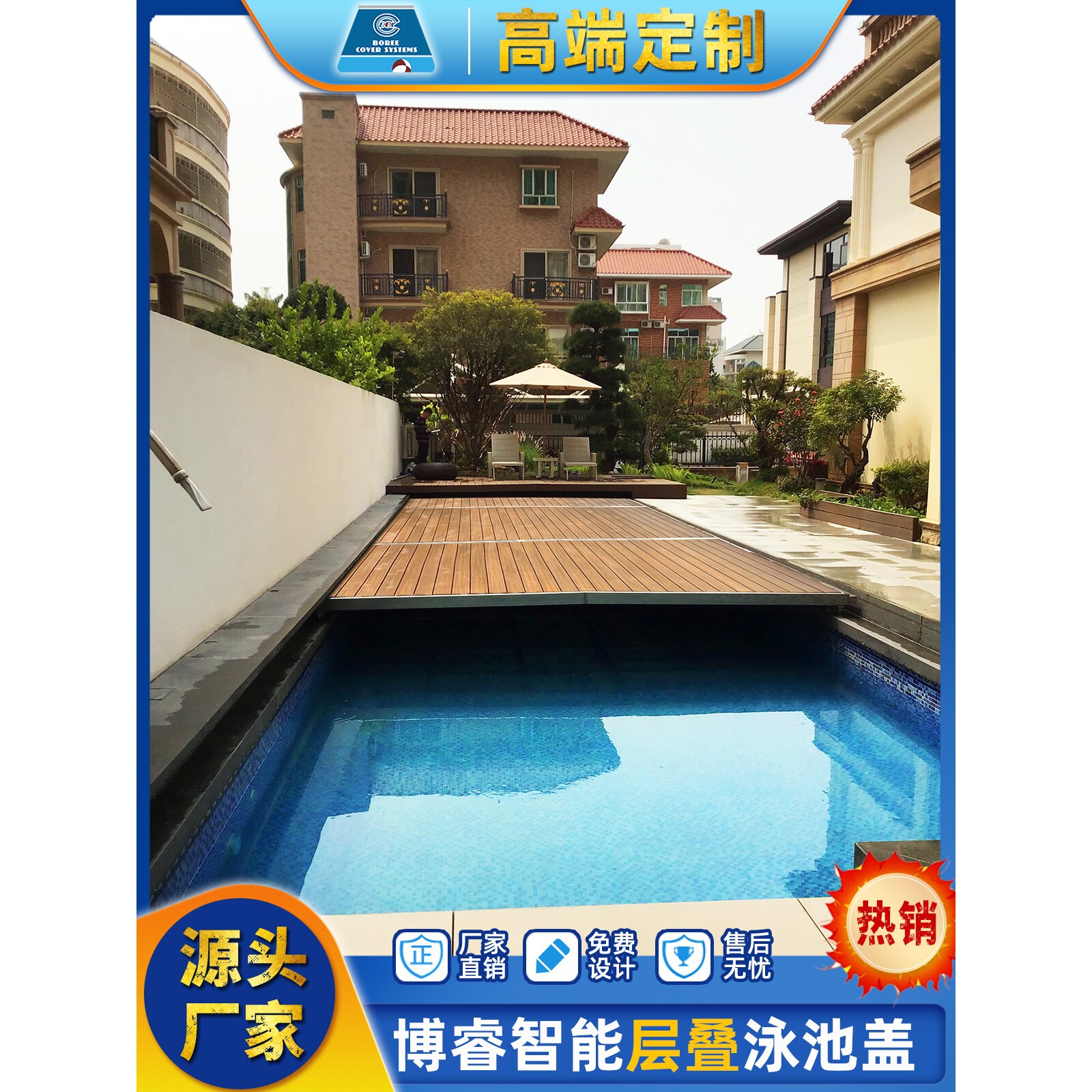 博睿全自动层叠泳池盖 电动遥控升降 别墅户外恒温防尘