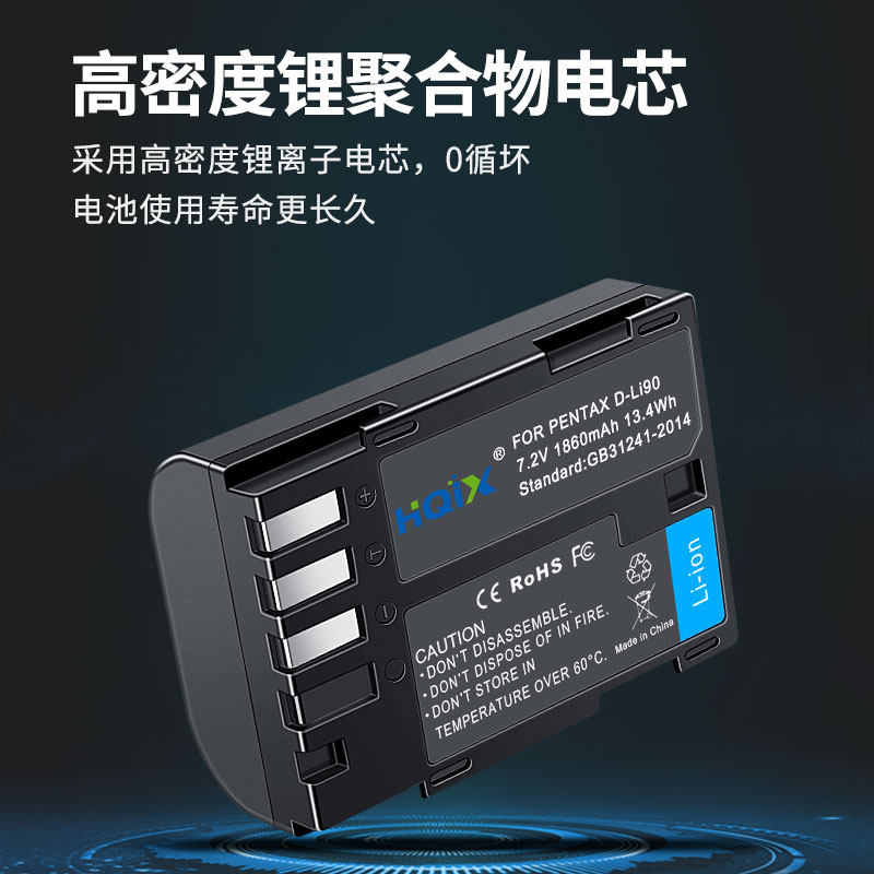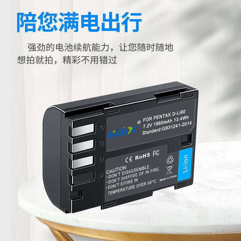 HQIX适用宾得 K-3Ⅱ K5Ⅱ 645D K-3 Mark Ⅱ相机D-LI90电池充电器