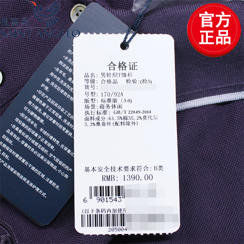 报喜鸟短袖商务休闲翻领T恤