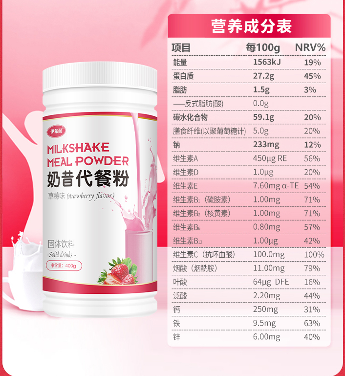代餐奶昔粉饱腹低脂抗饿轻断膳食早餐高纤维营养蛋白质健身热量卡