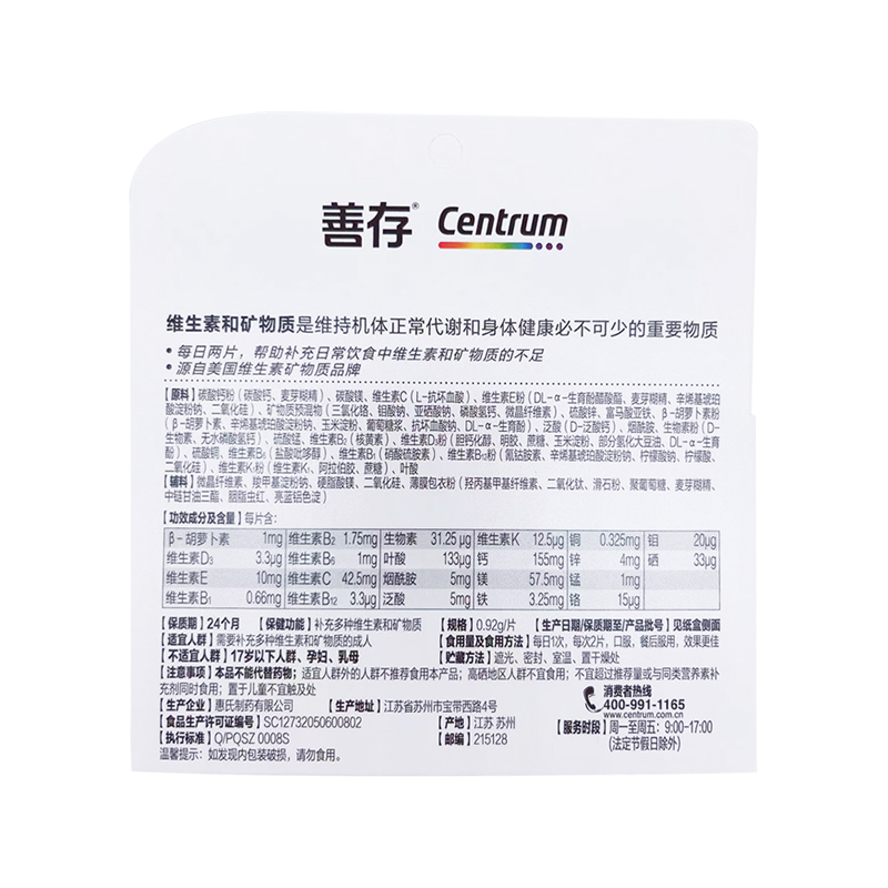 正品清仓 银善存多种维生素矿物质片钙镁锌硒D3VB612vc男女维生素