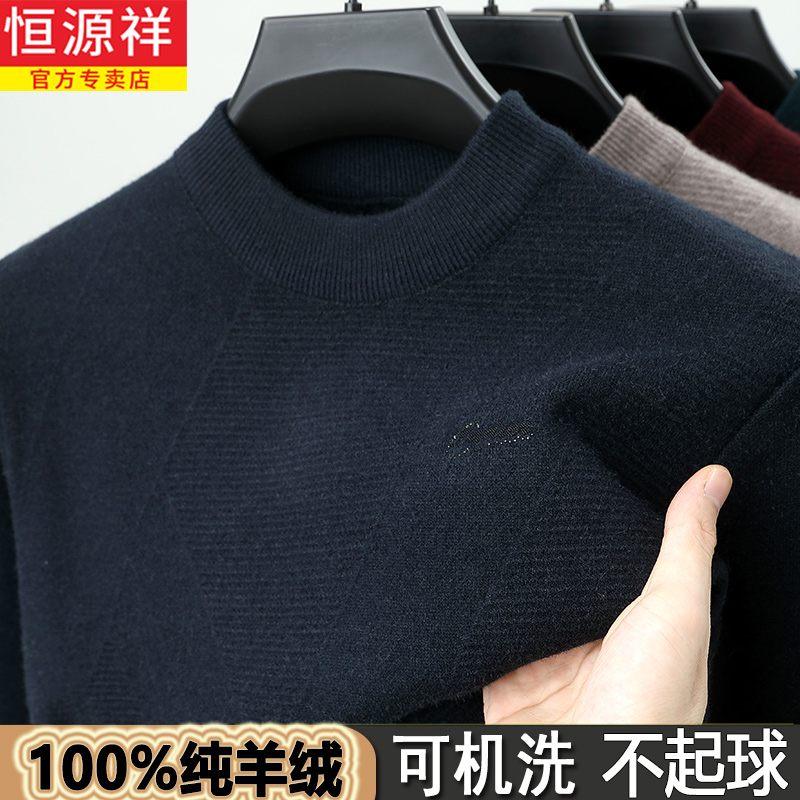 恒源祥100%纯羊绒衫男冬季新款加厚半高领羊毛衫男士保暖打底毛衣