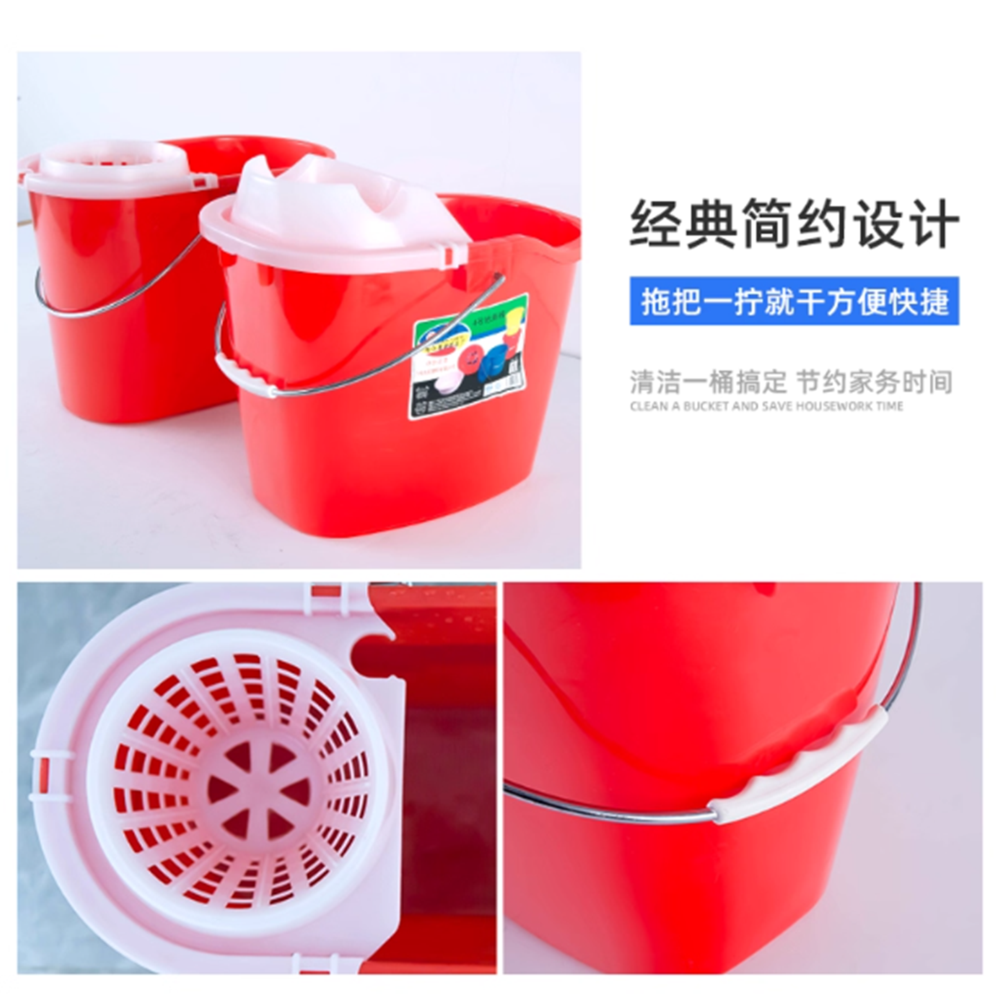 洛民珠江红色挤压式加厚拖地桶