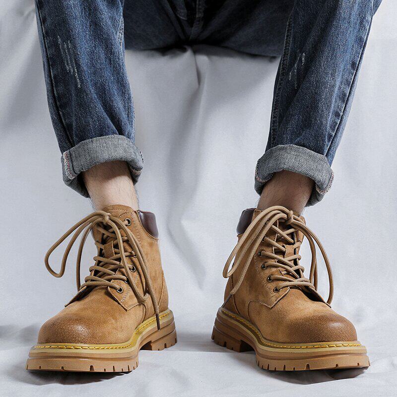 马丁靴男款2025冬季新款英伦风真皮高帮大黄靴美式中帮户外工装鞋