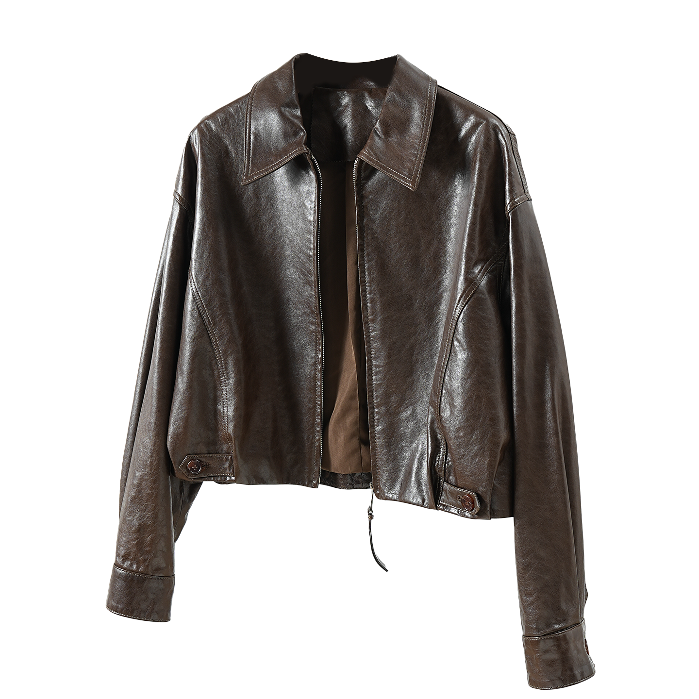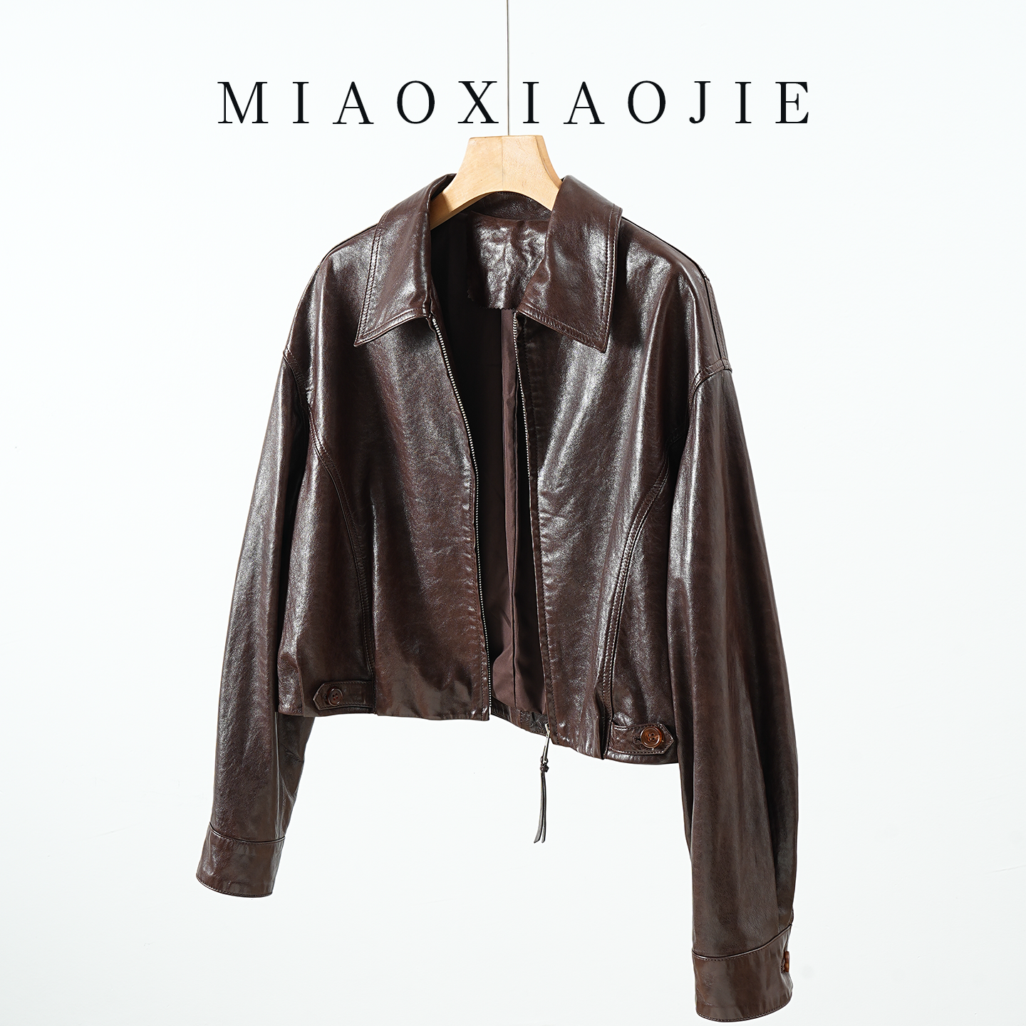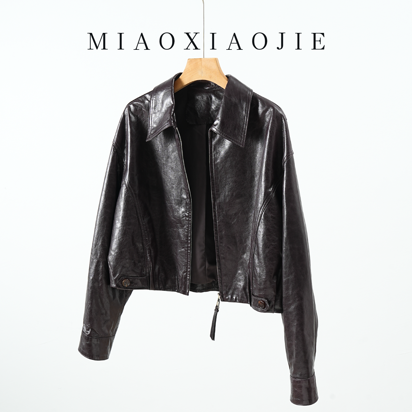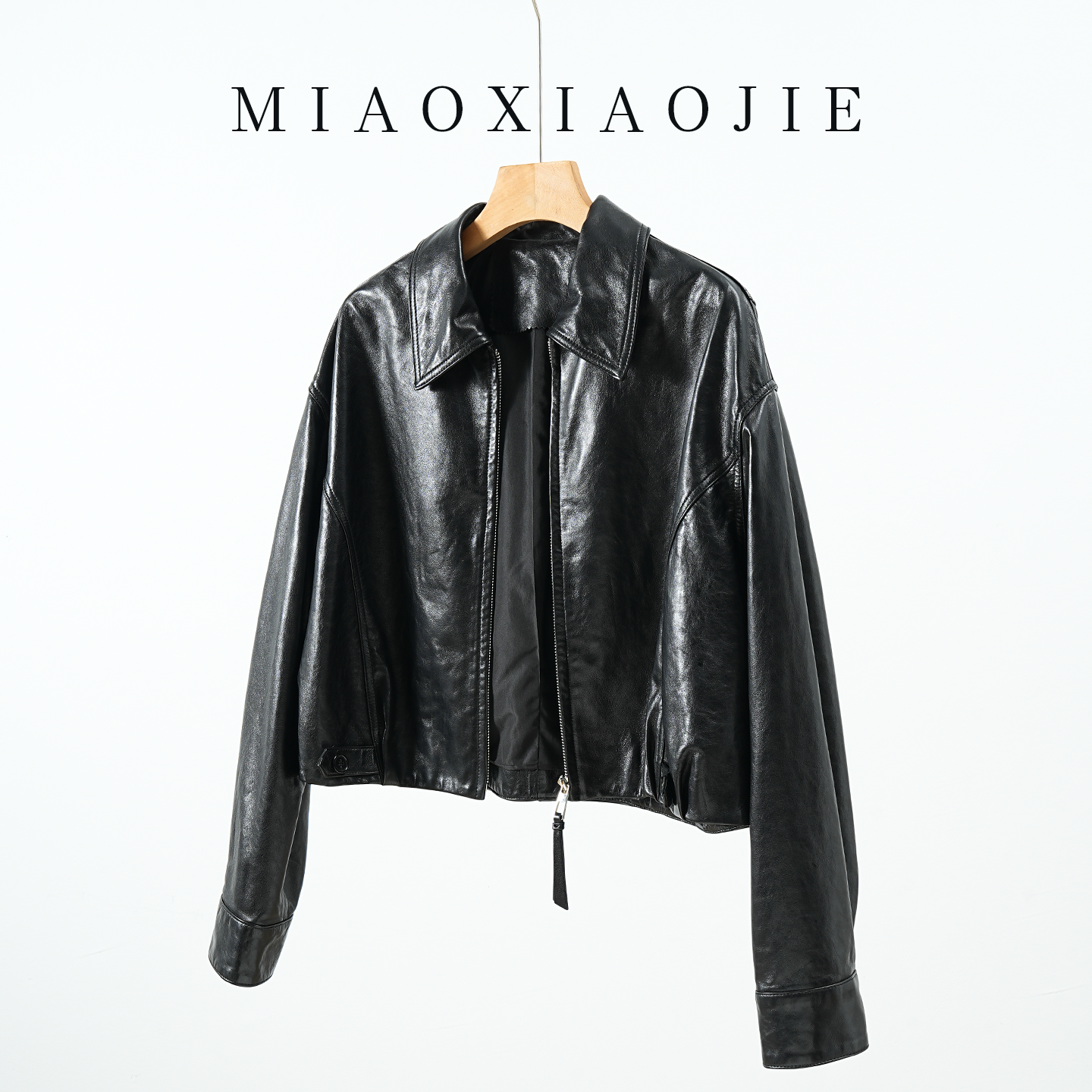 欧洲站高端油蜡羊皮真皮皮衣女短款2025秋冬新款小个子皮夹克外套