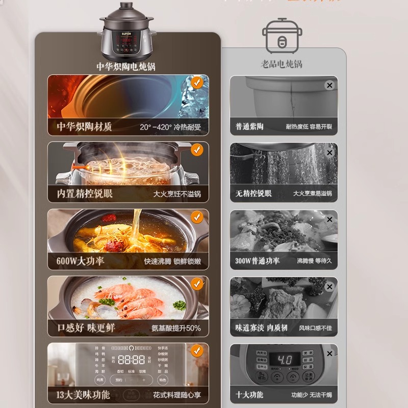 苏泊尔电炖锅中华炽陶家用煲汤大功率多功能大容量智能预约电砂锅
