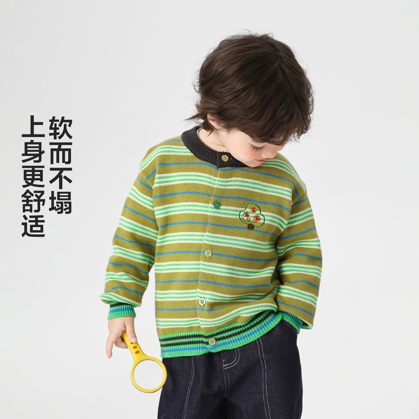 男童纯棉条纹针织开衫儿童毛衣外套秋装宝宝2025新款春秋小童上衣