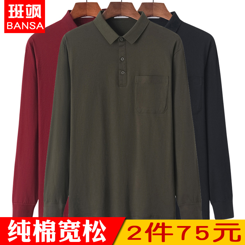 秋季中年男士长袖T恤纯棉薄款打底衫中老年人男装上衣爷爷爸爸装