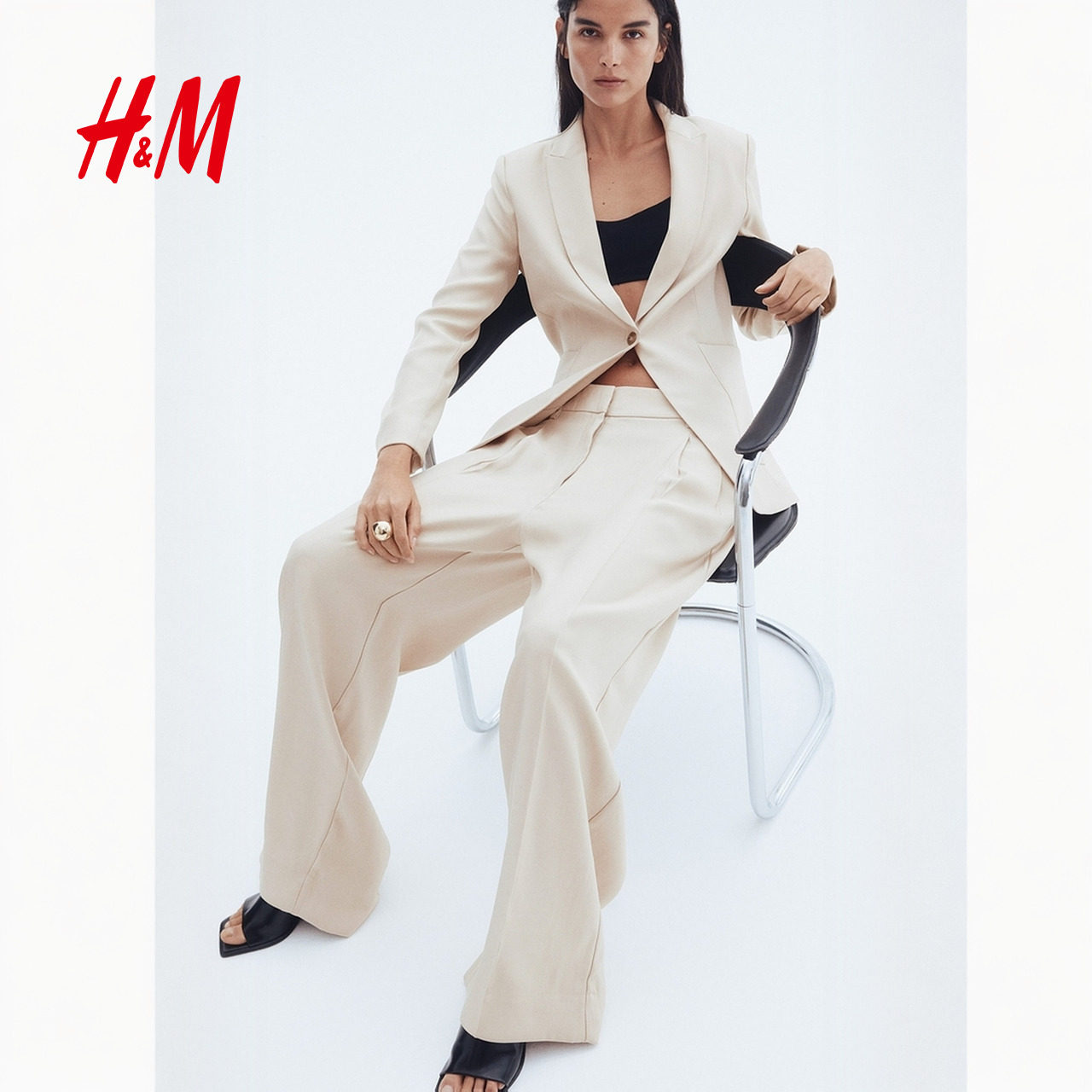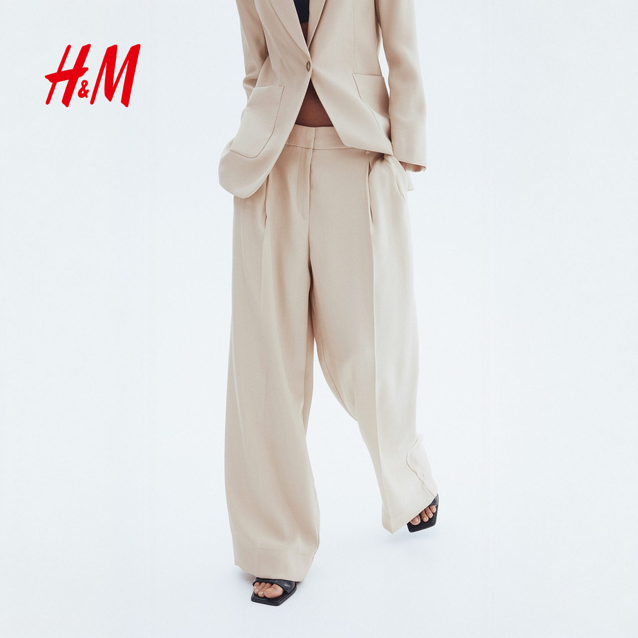HM女装西装裤春季时尚潮流简约气质阔腿西裤1293733