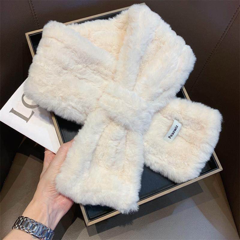 ins韩系软糯仿獭兔毛毛围巾女冬季百搭毛领学生情侣保暖毛绒围脖