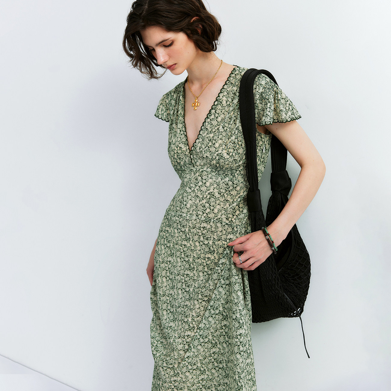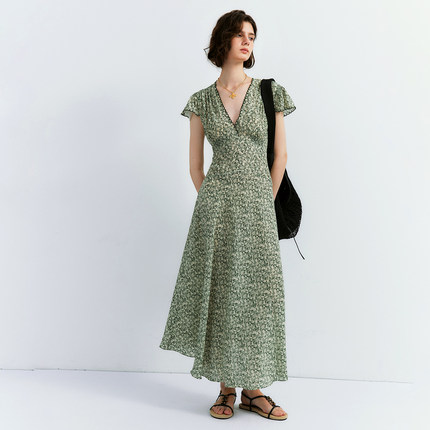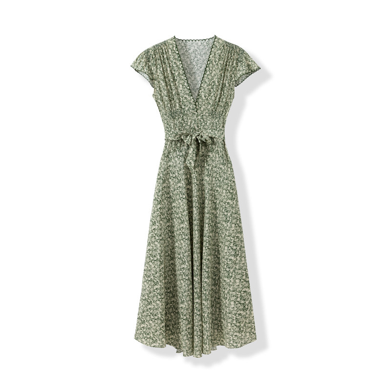 【花海奇遇】1OO%真丝双绉 清新浪漫茹伊印花打揽收腰碎花连衣裙