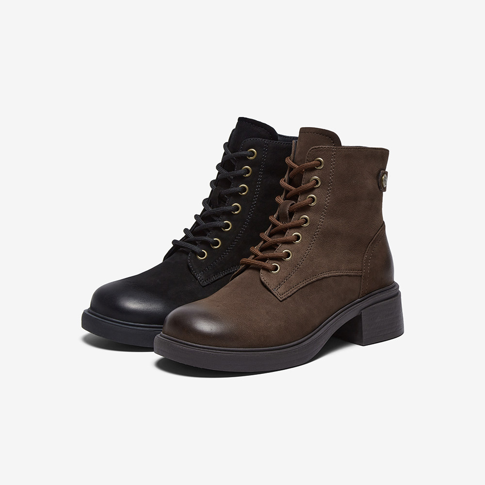 百思图2025冬季新款商场同款马丁靴时尚潮流街头女短靴UWQ01DD5