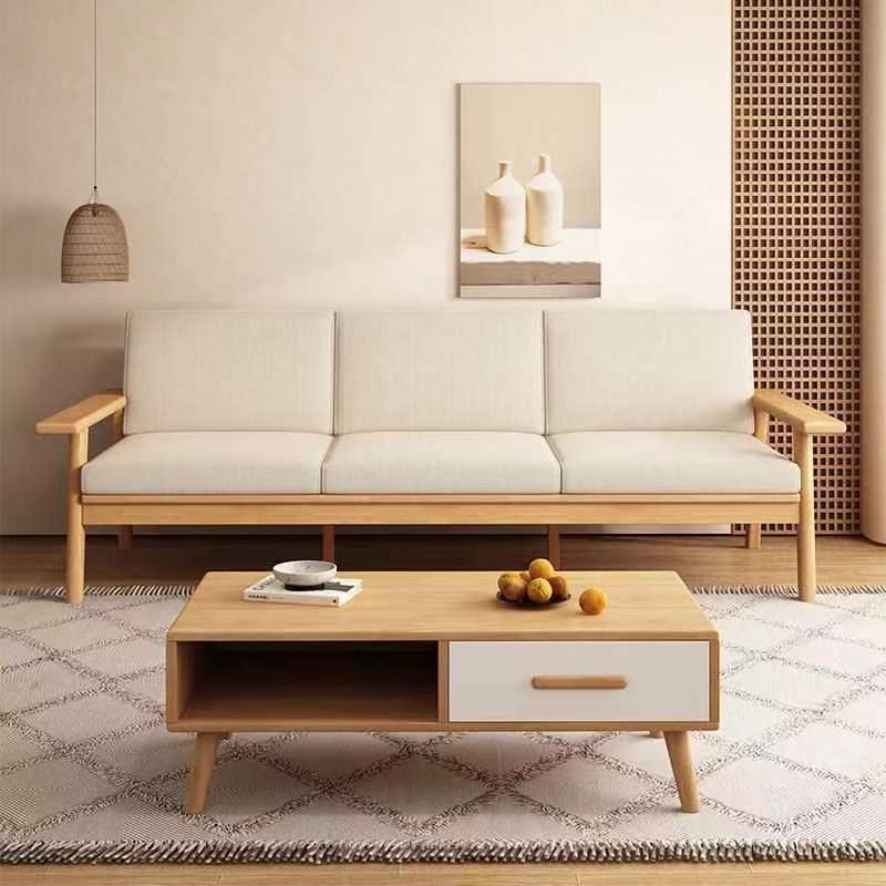 现代简约实木沙发客厅沙发小户型冬夏两用日式直排布艺沙发组合