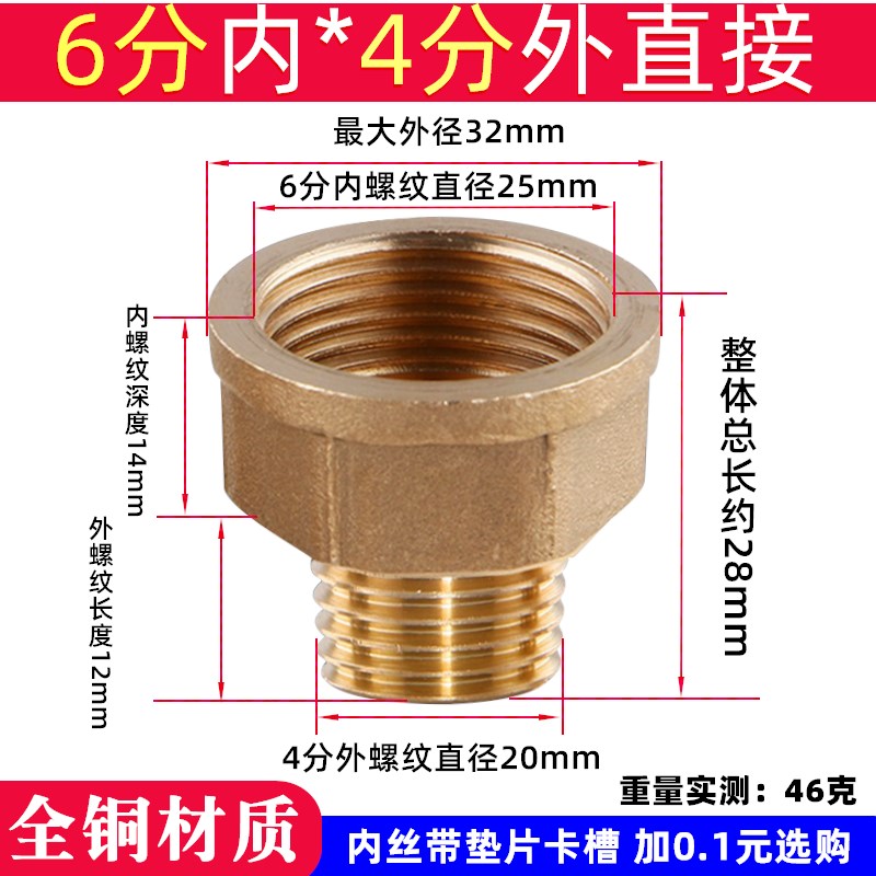 4分转1寸/6分内外丝变径异径对丝接头20转25直接配件大小头转换