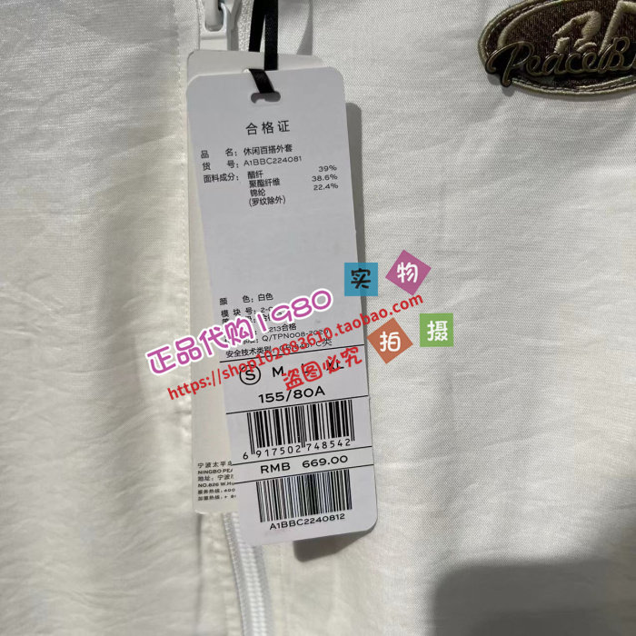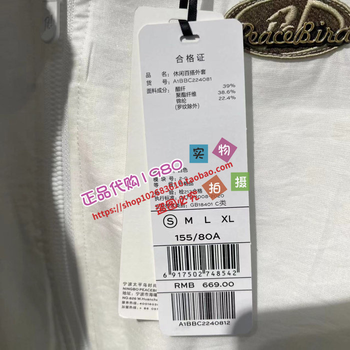 A1BBC2240 太平鸟女装2022春国内代购休闲百搭外套A1BBC224081