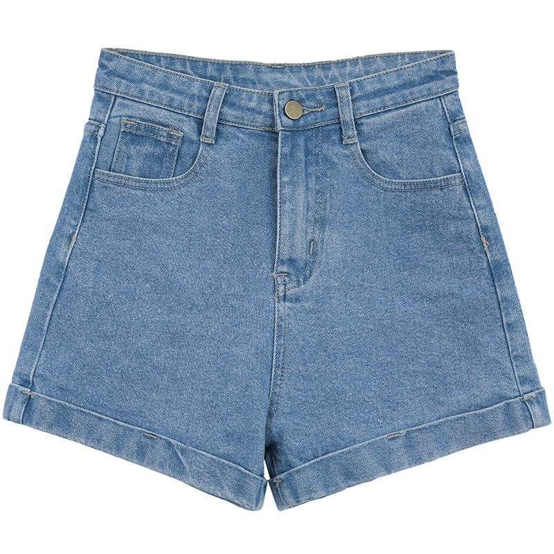 CV大码女装高腰翻边A字牛仔短裤